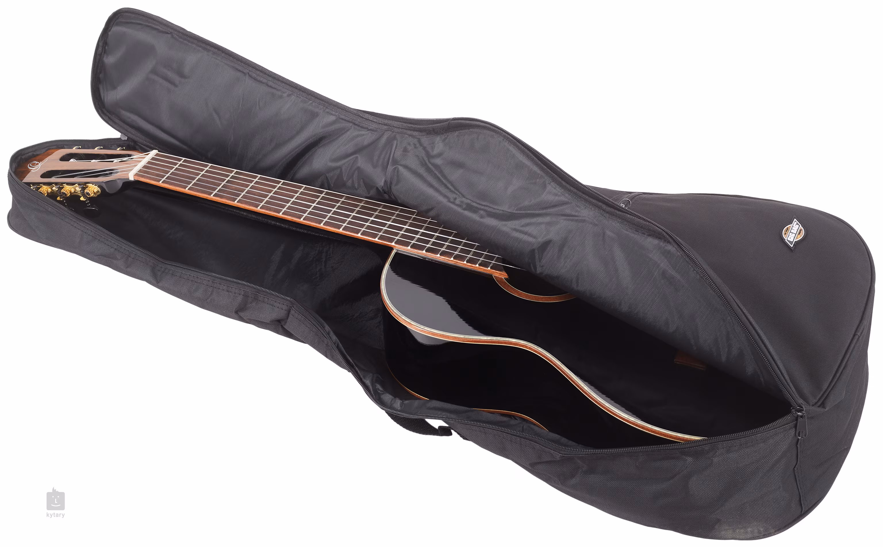 Dieser Koffer der britischen Firma Tanglewood bietet ein schlichtes schwarzes Design und eine 5 mm dicke Polsterung, die Ihr Instrument nicht nur zuverlässig schützt, sondern auch für ein geringes Gewicht sorgt. Zusammen mit den verstellbaren Schultergurten und dem seitlichen Griff können Sie sicher sein, dass der Koffer nicht nur sicher, sondern auch bequem unterwegs ist. Auf der Vorderseite finden Sie eine geräumige Tasche, in der Sie kleines Zubehör oder z.B. Notizen bis zum Format A4 unterbringen können.