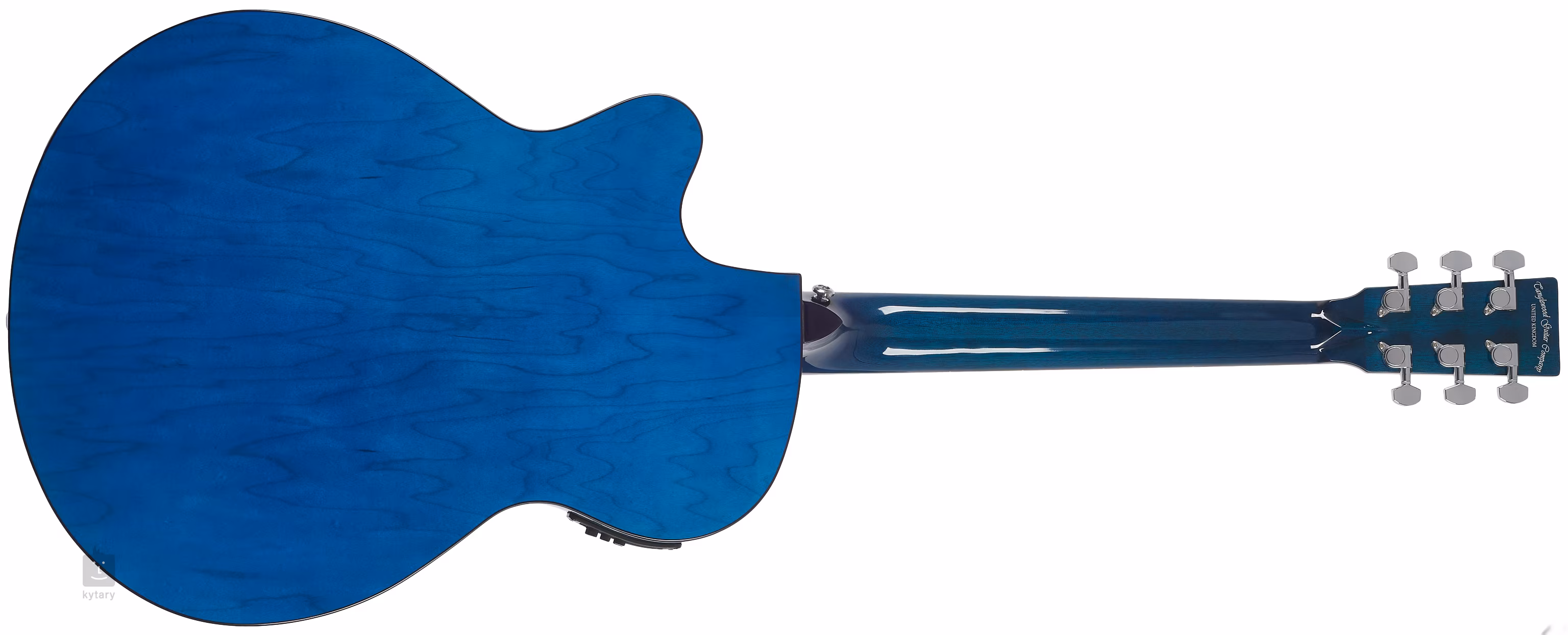 Die Tanglewood TA4CE BL ist eine elektroakustische Gitarre mit einem modernen „Super Folk”-Korpus, der im Vergleich zu Dreadnought-Modellen schmaler und flacher ist. Die Decke der Gitarre besteht aus laminiertem Quilted Ash, der Boden und die Zargen sind aus laminiertem Ahorn gefertigt. Die luxuriöse Maserung des Quilted Ash wird durch die glänzende Lackierung in Serenity Blue Gloss hervorgehoben.