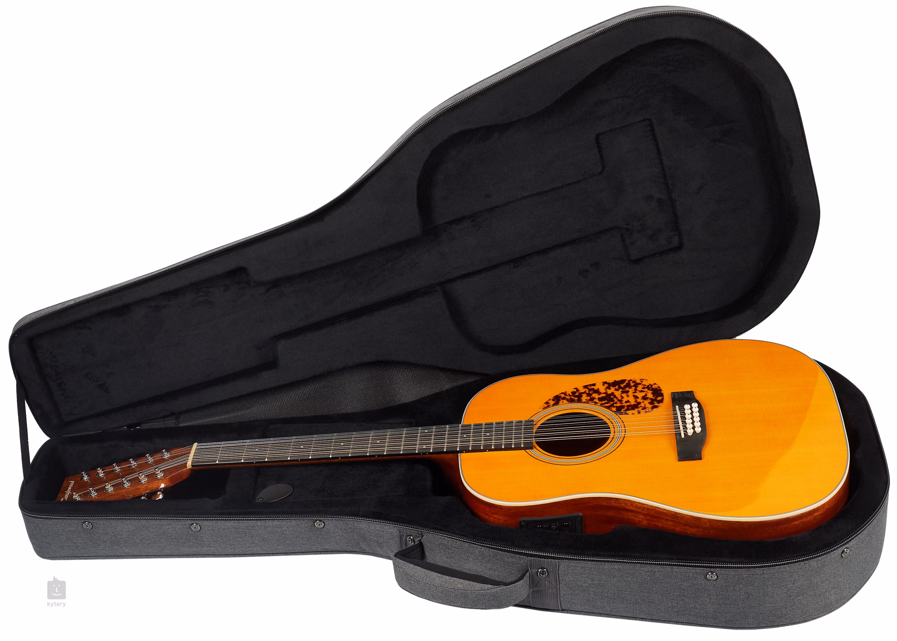 Das Soundsystem verfügt über eine Fishman Presys-Elektronik mit Dreiband-Equalizer und eingebautem Stimmgerät. Die Saiten werden über ein Griffbrett und einen Sattel aus Knochen in den hauseigenen Stimmmechaniken (Nickel-Waverly-Stil) und dem Walnuss-Griffbrett gehalten. Die schöne Verarbeitung wird durch das Antique Natural Gloss-Finish der Decke, die elfenbeinfarbene Bindung, die durch eine schwarze Linie ergänzt wird, und das Logo auf der Kopfplatte noch unterstrichen.
