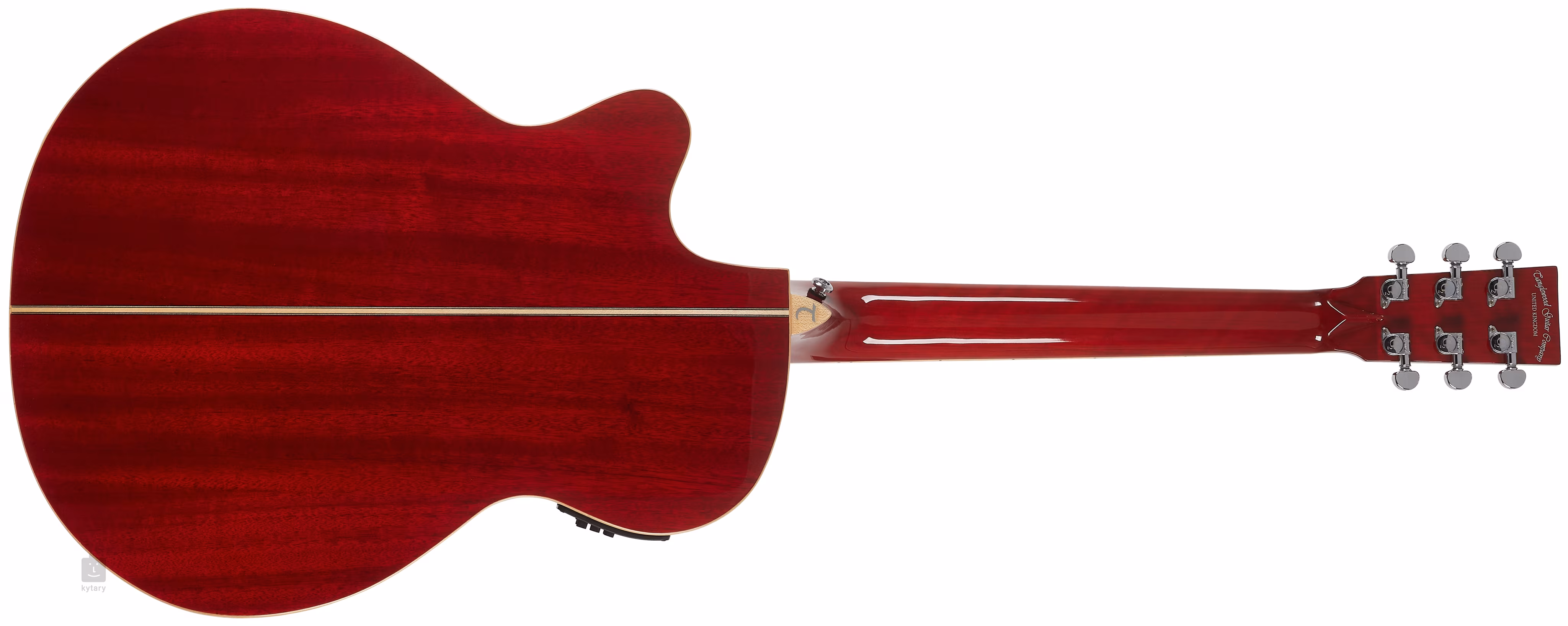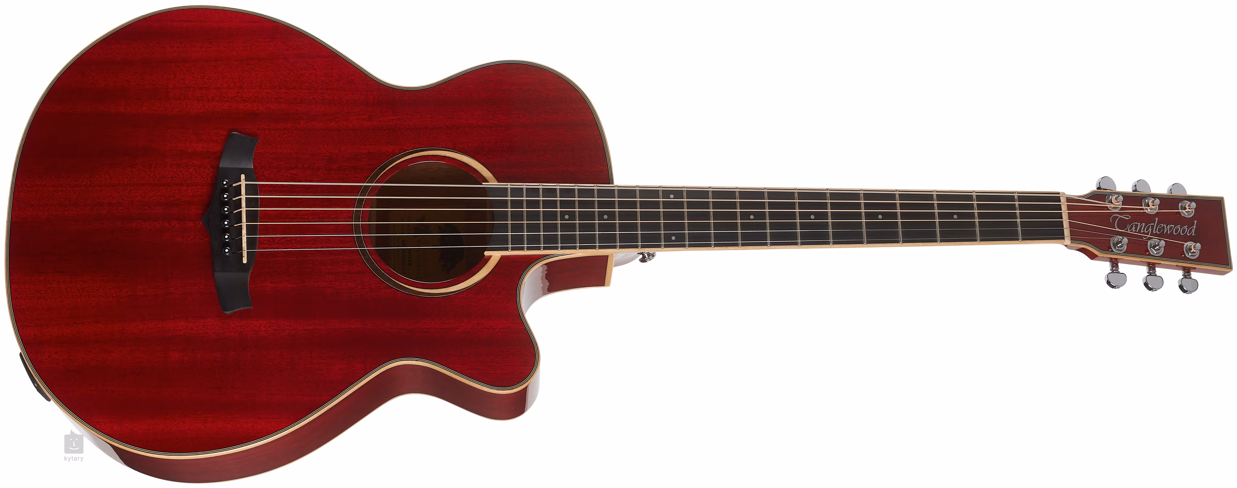 Die Klangverstärkung übernimmt der firmeneigene Vorverstärker TW Premium Plus mit Vierband-Equalizer, Phase-Funktion und integriertem Stimmgerät. Die Saiten sind über den NuBone-Sattel und -Steg in verchromten Die-Cast-Mechaniken und einem Steg aus Verbundmaterial befestigt. Die schöne Verarbeitung wird durch die beidseitige Ahorn-Einfassung des Korpus, die Ahorn-Rosette, die Verzierung der Rückseite und die Farbgebung der Vorderseite in Red Gloss unterstrichen.