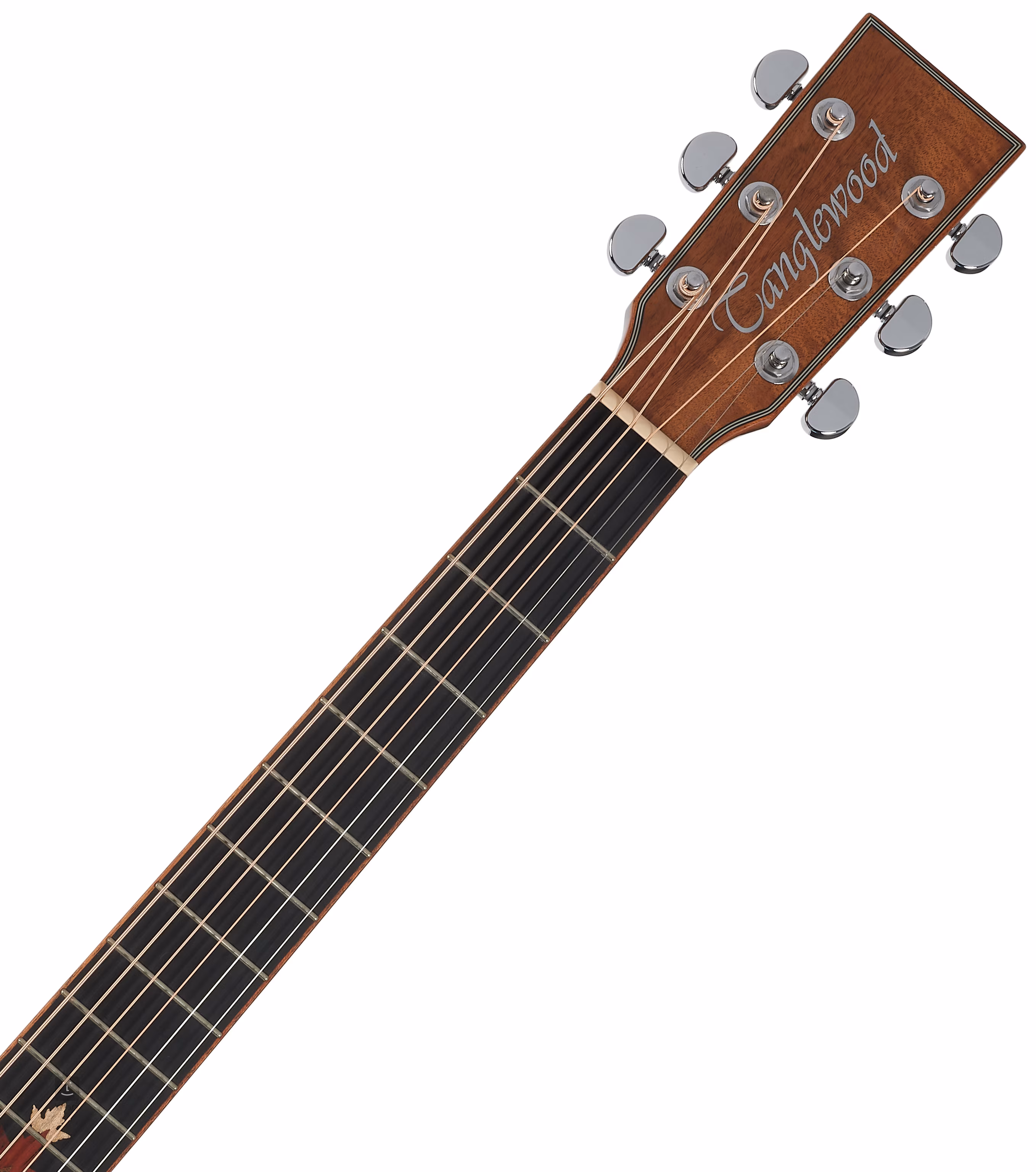 Zur Klangverstärkung gibt es den TW Premium Plus Vorverstärker mit Vierband-EQ, Phase-Funktion und integriertem Stimmgerät. Die Saiten werden in verchromten Mechaniken und einer Composite-Kopfplatte über die NuBone-Null- und Sattelbünde gehalten. Die schöne Verarbeitung wird durch das doppelseitige Mahagoni-Korpus-Binding, die Mahagoni-Rosette und die Perlmutt-Positionspunkte auf dem Griffbrett unterstrichen.