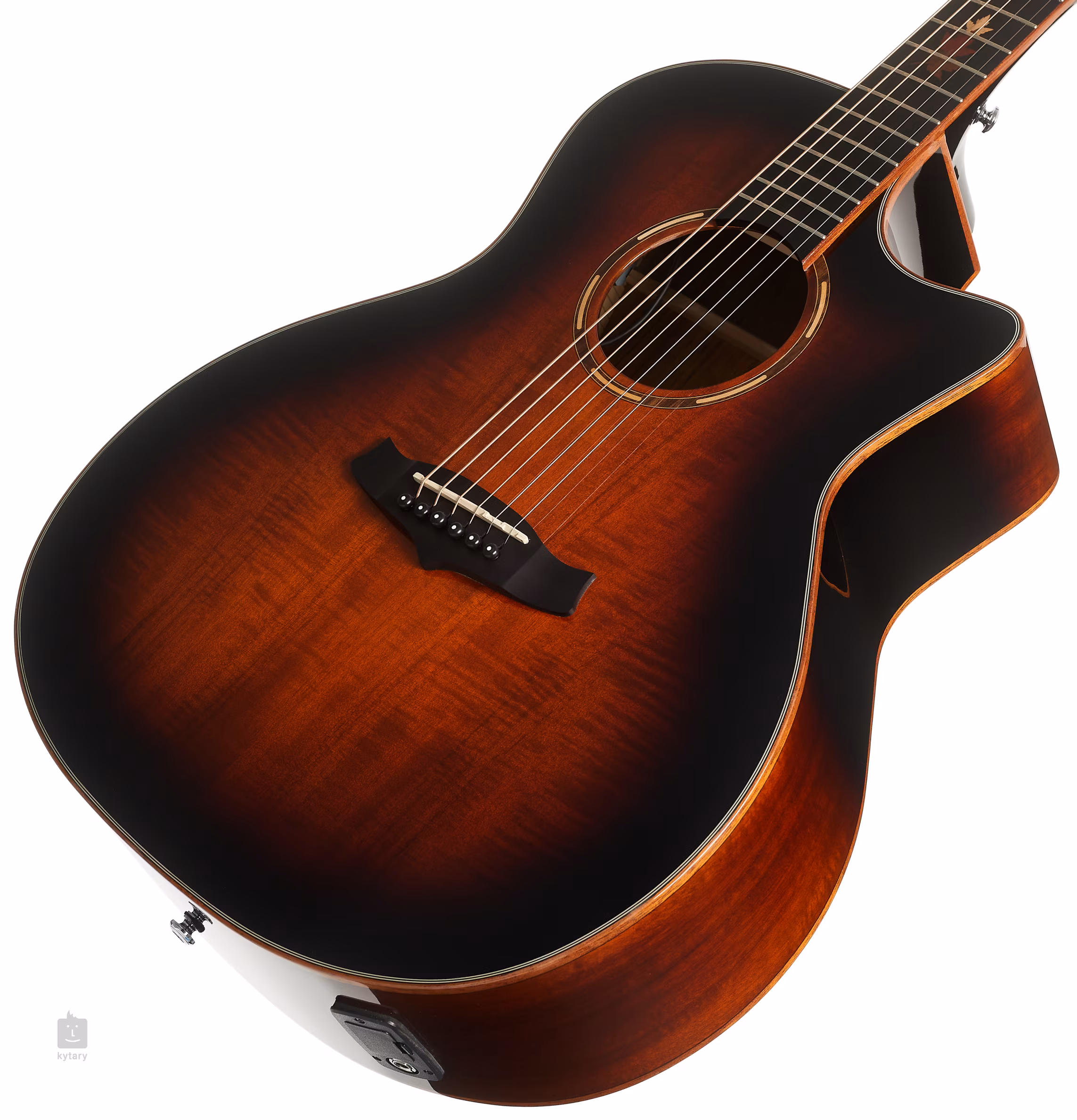Zur Klangverstärkung steht der TW Premium Plus Vorverstärker mit Vier-Band-EQ, Phase-Funktion und integriertem Stimmgerät zur Verfügung. Die Saiten werden in verchromten Grover-Mechaniken und einer Composite-Kopfplatte über NuBone-Null- und Sattelbünde gehalten. Die schöne Verarbeitung wird durch das doppelseitige Mahagoni-Korpus-Binding, die Mahagoni-Rosette, die Mother of Pearl-Positionspunkte auf dem Griffbrett, den Mittelstreifen auf der Bodenplatte und das Autumn Burst Gloss-Finish auf der Frontplatte unterstrichen.
