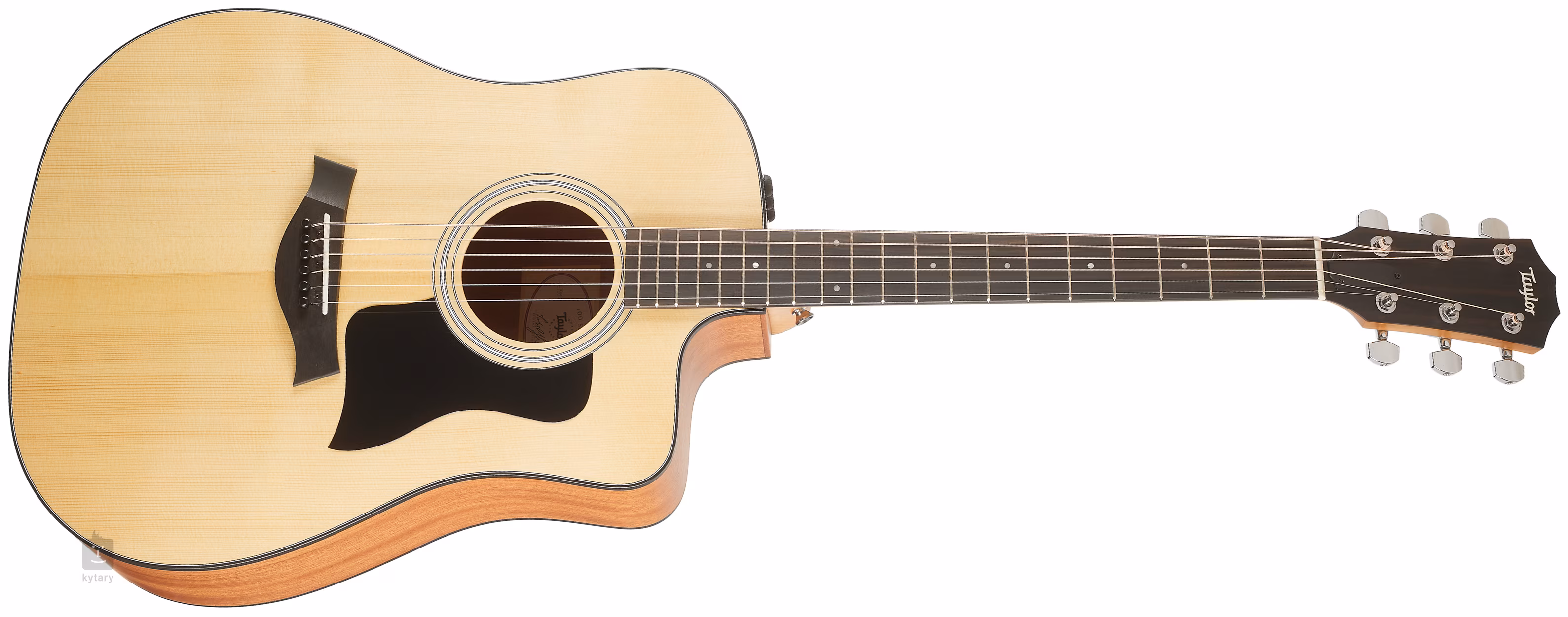 Die elektroakustische Gitarre 110ce-S der amerikanischen Marke Taylor hat einen großen Resonanzkörper vom Typ Dreadnought. Die Decke der Gitarre ist aus massivem Sitka-Fichtenholz gefertigt, der Boden und die Zargen aus laminiertem Sapeli. Der Ahornhals ist mit einem Ebenholzgriffbrett mit zwanzig Bünden und Positionsmarkierungen aus Perlmuttimitat versehen. Das Spielgefühl in den höheren Lagen des Griffbretts wird durch einen sanft abgerundeten unteren Korpusausschnitt (Venetian Cutaway) erleichtert. Die Saiten sind über einen Micarta-Sattel und einen TusQ-Steg in verchromten Taylor-Die-Cast-Mechaniken befestigt. Die schöne Verarbeitung wird durch traditionelle Elemente wie die aus drei Ringen bestehende Rosette, die schwarze Einfassung des Korpus und das praktische schwarze Schlagbrett unterstrichen. Für die Tonabnahme sorgt das Taylor Expression System 2. Dabei handelt es sich um ein völlig einzigartiges Abnahmesystem, das die Möglichkeiten einer realistischen Klangwiedergabe in bisher ungeahnte Dimensionen erweitert. Für die Tonabnahme werden drei speziell entwickelte unabhängige piezoelektrische Sensoren verwendet, die hinter dem Steg angebracht sind. Im Gegensatz zu herkömmlichen Sensoren erfassen sie nicht die Auf- und Abbewegung der Decke, sondern die natürlichen Vor- und Rückwärtsvibrationen des Stegsattels. Dadurch ist der Klang viel natürlicher, farbenreicher und angenehmer und reagiert besser auf die Dynamik Ihres Spiels. Gleichzeitig ist das Signal dank des neuen Vorverstärkers um 25 % stärker. Selbstverständlich werden Rückkopplungen eliminiert und es besteht die Möglichkeit, Lautstärke, Bässe und Höhen einzustellen. Das Instrument wird in einer Tasche (Gig Bag) geliefert. Die Instrumente der Serie 100 werden in einer Fabrik im mexikanischen Tecate hergestellt, was jedoch nichts an ihrer Qualität ändert. Tecate liegt nur wenige Dutzend Kilometer von El Cajon in Kalifornien entfernt, sodass die Produktion ordnungsgemäß kontrolliert wird.