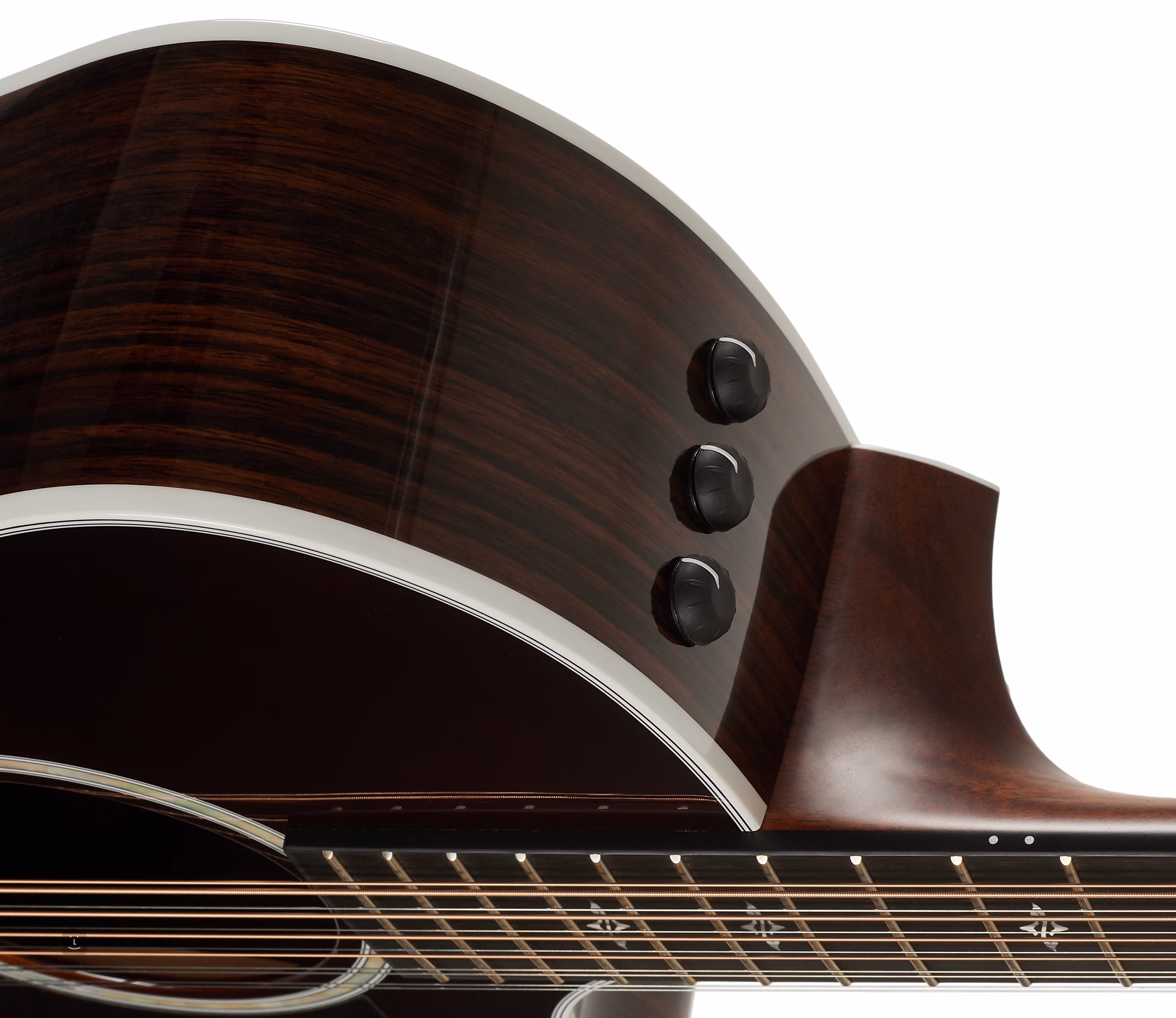 Die Tonabnahme erfolgt über das Taylor Expression System 2, ein völlig neuartiges Tonabnehmerverfahren, das die Möglichkeiten der realistischen Klangwiedergabe auf ein noch nie dagewesenes Niveau hebt. Als Tonabnehmer werden drei speziell entwickelte unabhängige piezoelektrische Tonabnehmer verwendet, die sich hinter dem Griffbrett befinden. Anders als herkömmliche Tonabnehmer nehmen sie nicht die Auf- und Abwärtsbewegung des Brettes wahr, sondern die natürliche Hin- und Herschwingung des Grashüpfer-Sitzes. Dadurch wird der Klang viel natürlicher, farbiger und angenehmer und reagiert besser auf die Dynamik Ihres Spiels. Gleichzeitig macht der neue Vorverstärker das Signal 25 % stärker. Natürlich gibt es keine Rückkopplungen mehr und Sie können Lautstärke, Bässe und Höhen einstellen.