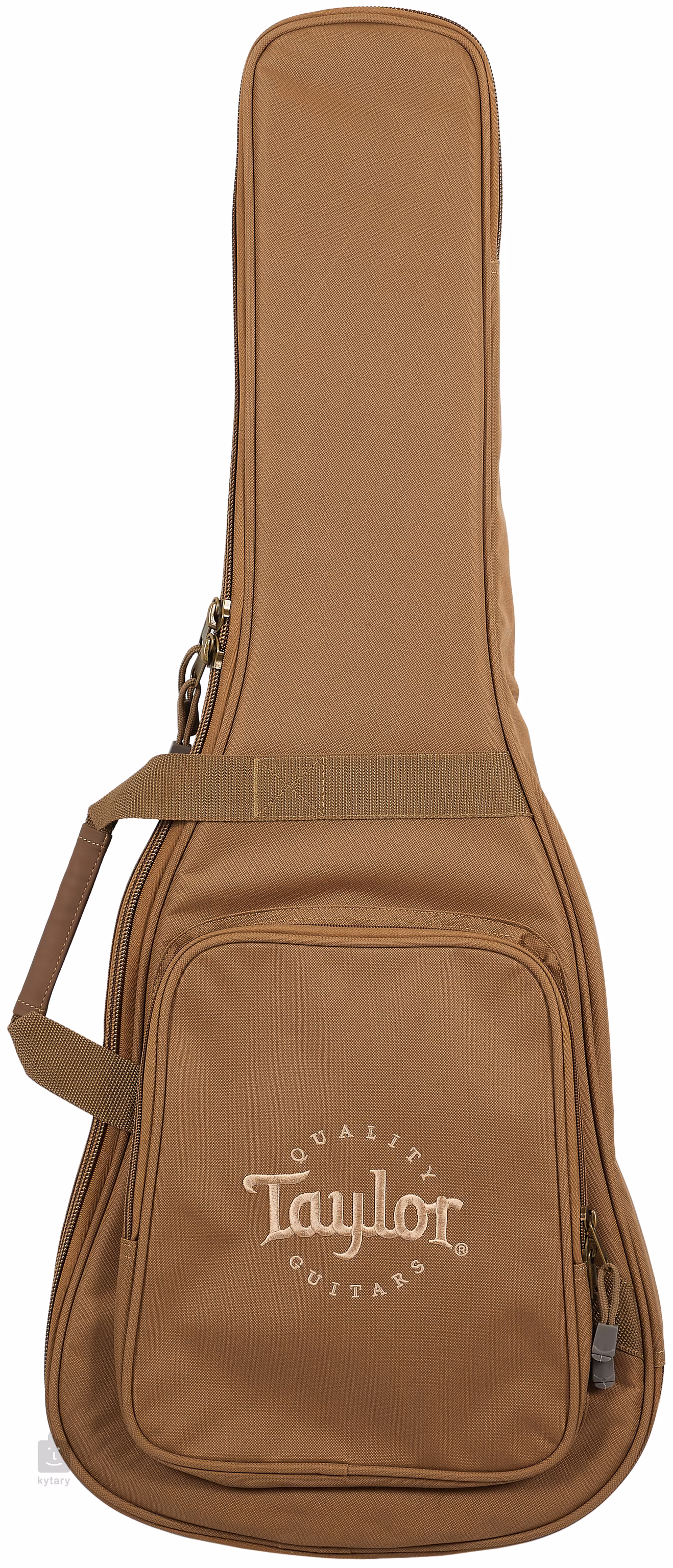 Die Vorderseite der Gitarre ist aus massiver Sitka-Fichte gefertigt, während der Boden und die Zargen aus laminiertem Walnussholz hergestellt sind. Auf den Mahagoni-Hals ist ein Ebenholz-Griffbrett geklebt, das mit zwanzig Bünden und positionierten Dots aus Perlmutt-Imitat ausgestattet ist. Eine stabile Stimmung wird durch die TusQ-Nullbund-Saitenaufhängung in Taylor-Chromdruckgussmechanik und ein Ebenholz-Griffbrett gewährleistet. Die stilvolle Verarbeitung wird durch traditionelle Elemente in Form einer schlichten Rosette und eines mit dem Firmenlogo verzierten Furniers auf der Kopfplatte aus Copafera-Holz akzentuiert.