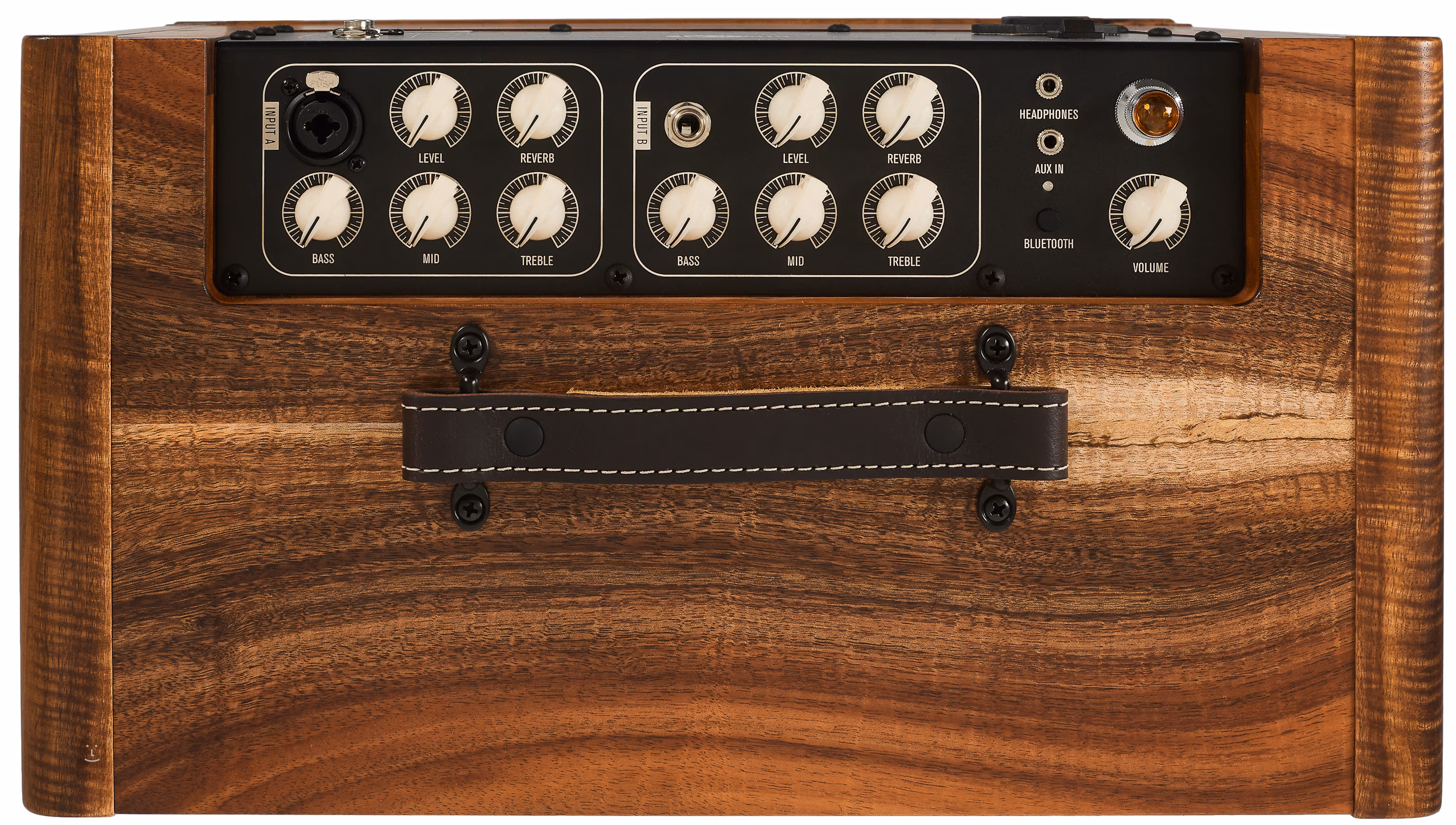 Der Combo verfügt außerdem über Bluetooth-Funktionalität, so dass Sie mit Ihren Lieblingssongs jammen, Begleitmusik abspielen oder ihn einfach als leistungsstarken Bluetooth-Lautsprecher verwenden können, um die Alben Ihrer Lieblingskünstler zu hören. Außerdem gibt es einen Aux-Eingang für die Wiedergabe externer Audiosignale über eine Kabelverbindung, einen 3,5-mm-Kopfhörerausgang, einen 6,3-mm-Line-Ausgang und einen XLR-DI-Ausgang für den Anschluss des Combos an ein externes PA-System. Neben dem Combo befindet sich auch ein perfekt passender Holzhocker in der Verpackung, der zusammen mit dem Combo ein fein abgestimmtes Designstück bildet.