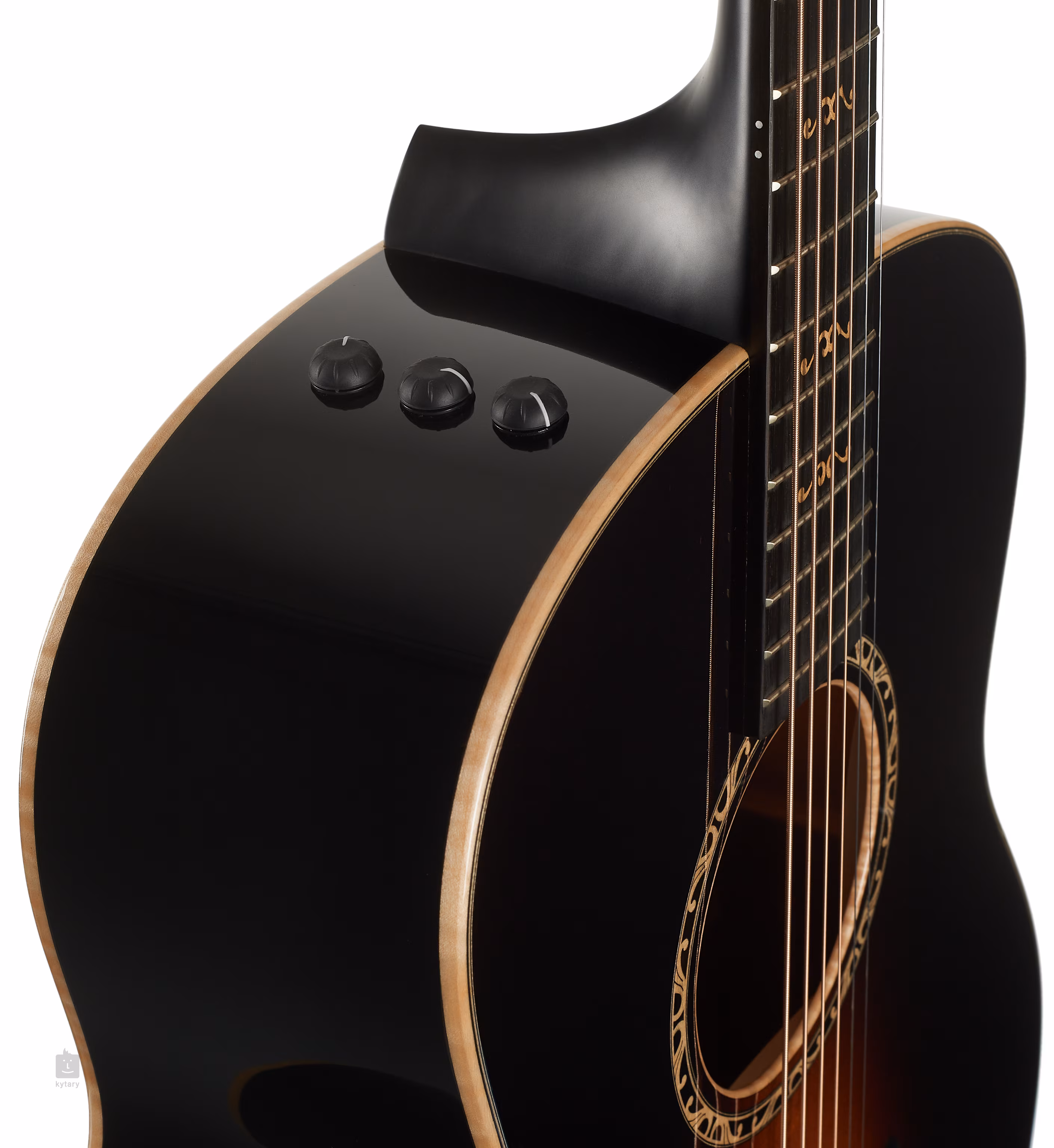 Das Ebenholz-Griffbrett ist auf den Mahagoni-Hals geleimt. Die stabile Stimmung wird durch die Befestigung der Saiten über den Black TusQ Nullbund in der Gotoh 510 Antique Gold Mechanik mit schwarzen Wirbeln und über den Micarta-Sattelbund im Ebenholzgriffbrett gewährleistet. Die luxuriöse Verarbeitung der Gitarre wird durch die Einfassung des Korpus aus gemasertem Ahorn und die dekorativen Elemente (Rosette, Positionsmarkierungen auf dem Griffbrett, Einlage auf der Kopfplatte) aus Ahorn (900er Serie) unterstrichen.