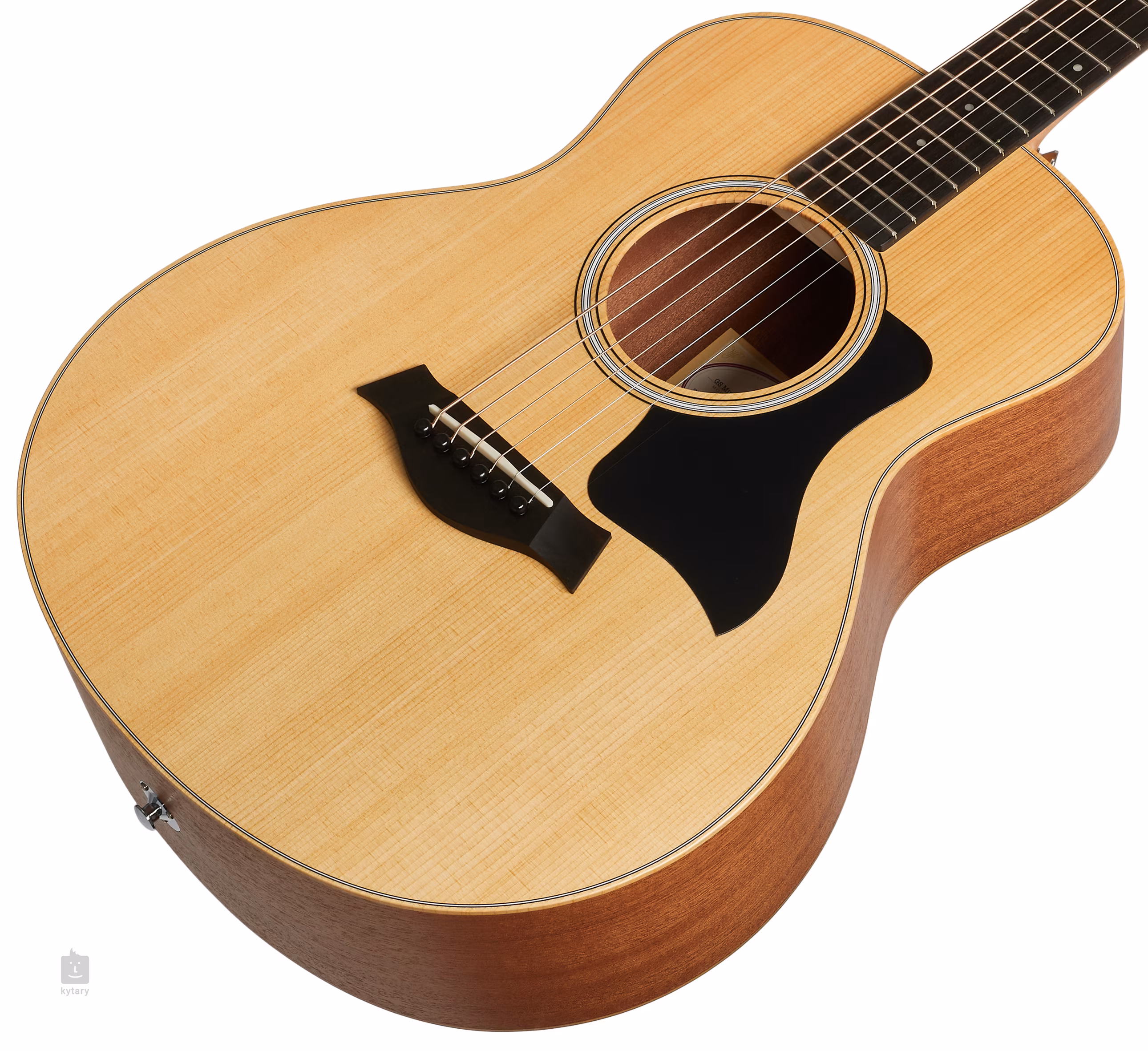 Die Stabilität der Stimmung wird durch die Befestigung der Saiten über den NuBone-Nullbund in der verchromten Taylor-Mechanik und über den Micarta-Sattel im Ebenholzkolben gewährleistet. Das stilvolle Aussehen des Instruments wird durch traditionelle Elemente in Form eines schwarzen Schlagbretts, einer aus schwarzen und weißen Ringen bestehenden Rosette und dem Taylor-Logo auf der Kopfplatte betont.