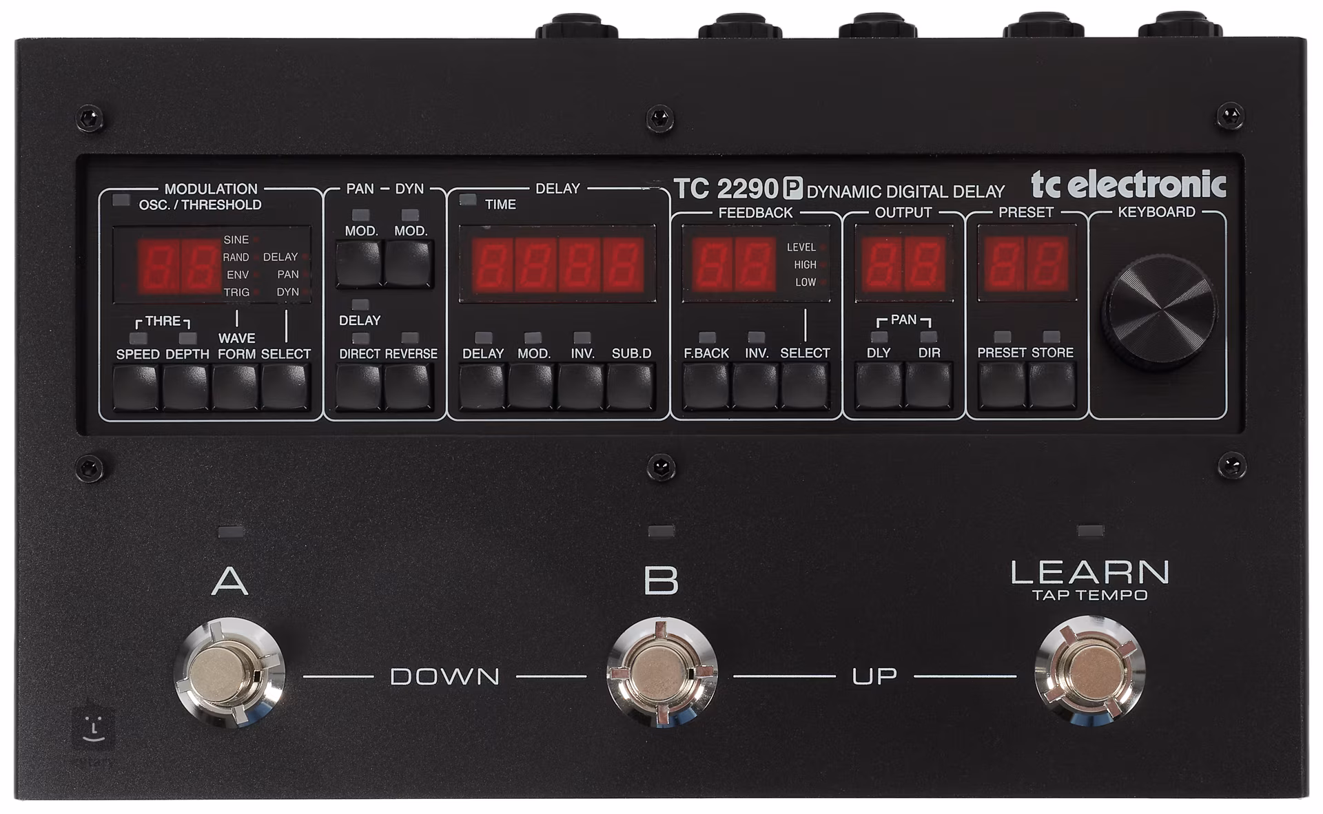 Der 2290 P Dynamic Digital Delay-Effekt ist eine Pedalversion des legendären TC 2290, der in den 1980er Jahren neue Maßstäbe für die digitale Delay-Technologie gesetzt hat. Er ist ein flexibler Soundprozessor, mit dem Sie neben Delay-Effekten auch eine breite Palette an Sounds von Tremolo und Vibrato über Kompressor bis hin zu Chorus und Flanger erzeugen können.