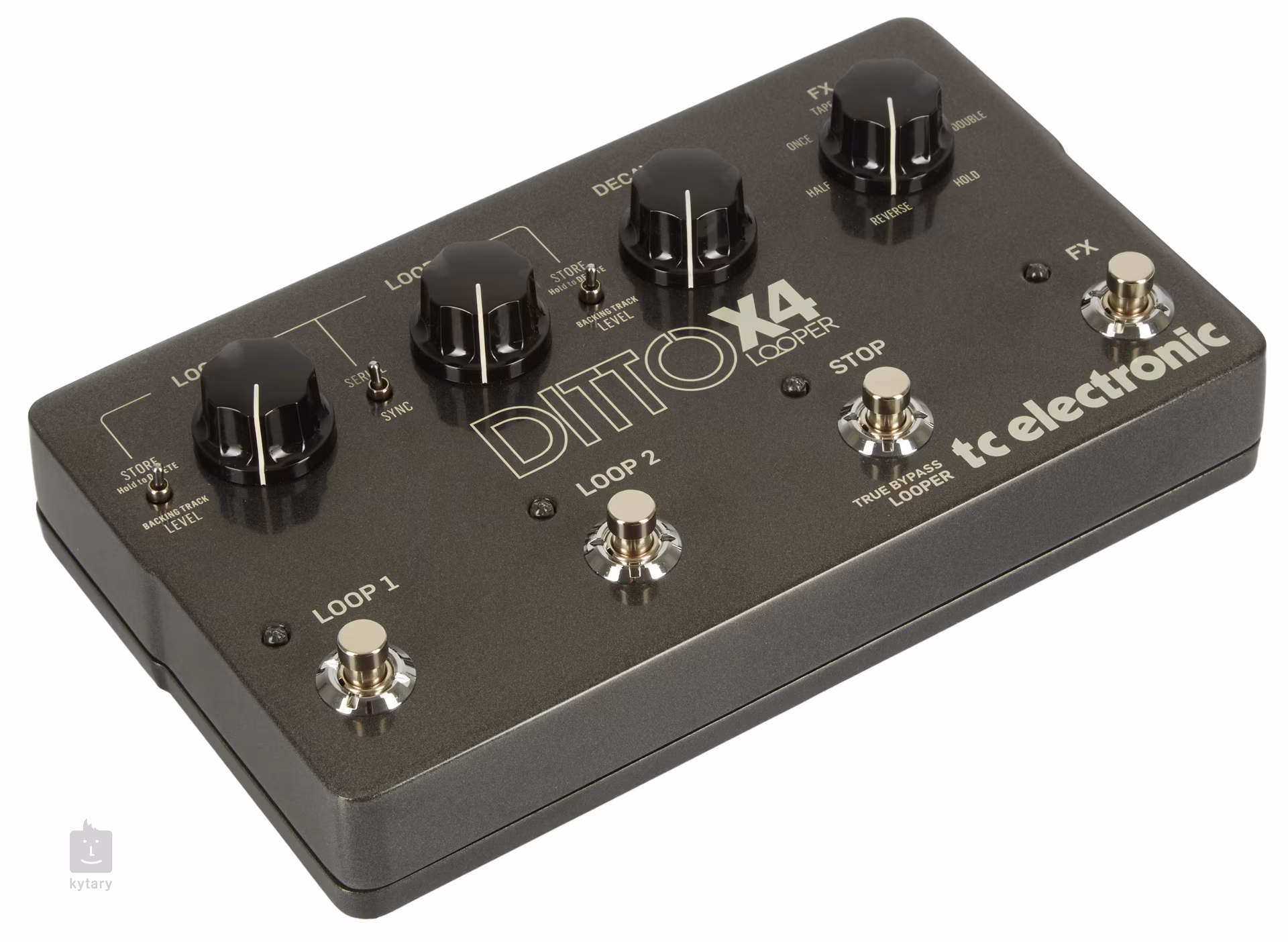 Der ursprüngliche Ditto Looper von TC Electronic wurde zum absoluten Hit unter Gitarristen und zu einem der meistverkauften Gitarrenlooper der Welt. Auf diese Box folgt nun der Ditto X4 Looper, der die umfangreichste Ausstattung aller Ditto Looper beherbergt. Im Gegensatz zu seinen Vorgängern ermöglicht er die Aufnahme von zwei separaten Loops, die in zwei Modi wiedergegeben werden können - im Sync-Modus werden beide Loops wiedergegeben, während man im Serial-Modus zwischen ihnen umschalten kann. Das X4 verfügt außerdem über eine Reihe von sieben Loop-Effekten und eine Decay-Funktion, mit der Sie steuern können, ob und wie schnell Ihr aufgenommener Loop ausklingt, bis er vollständig abklingt.