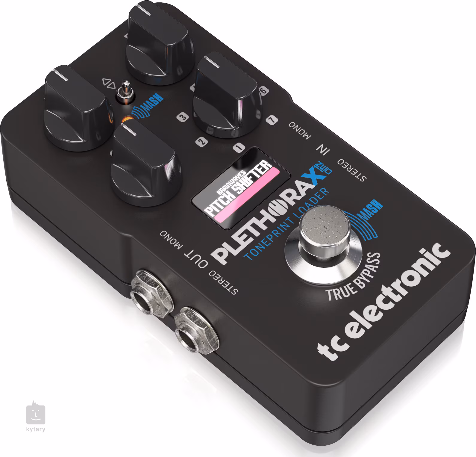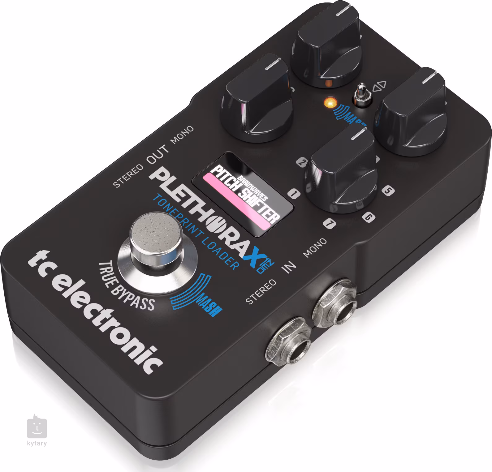 Der PLETHORA X1 ist der jüngste und kompakteste Bruder der beiden vorherigen Multieffekte aus der PLETHORA-Serie – X5 und X3. Im Gegensatz zu den Vorgängerversionen bietet er nur einen Fußschalter, sodass er sich sehr einfach in Ihr Pedalboard integrieren lässt. Dank der innovativen MASH-Funktion kann der Fußschalter ähnlich wie ein Expression-Pedal verwendet werden, um die dynamischen Parameter der einzelnen Effekte zu steuern. Das Gerät bietet 7 Presets, von denen jedes zwei verschiedene TonePrint-Effekte aufnehmen kann. Insgesamt können Sie also zwischen vierzehn verschiedenen Sounds umschalten (werkseitig sind die Effekte/Presets Hall of Fame II, Flashback II, Sub n Up, Corona Chorus, Viscous Vibe, Quintessence und Pipeline voreingestellt). Mit drei universellen Potentiometern können Sie die Effektparameter schnell einstellen – Informationen zum gesteuerten Effekt und seinen Parametern werden auf dem übersichtlichen LCD-Display angezeigt.