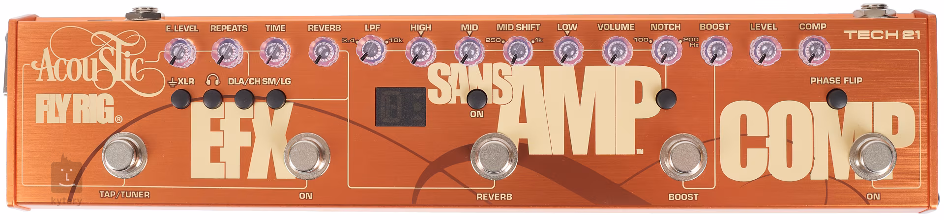Acoustic Fly Rig ist ein Multieffekt/Vorverstärker für akustische Instrumente aus der Produktion der Marke Tech 21. In kompakter und übersichtlicher Form bietet er alles Wesentliche, was Sie als Spieler einer Akustikgitarre oder anderer akustischer Instrumente auf der Bühne oder bei der Arbeit im Studio benötigen. So werden Sie das Durcheinander von Verbindungskabeln, lästige Rückkopplungen oder demoralisierende Signale (visuell und akustisch) einer leeren Batterie in Ihrem Pedaleffekt endgültig los. Gleichzeitig müssen Sie nicht mehr in Preset-Datenbanken blättern und Informationen vom Display ablesen. All das bietet Acoustic Fly Rig nicht.