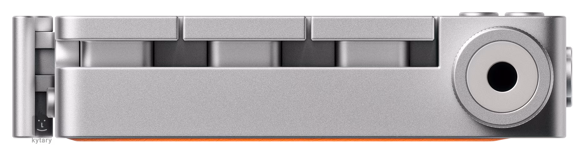 Der TP–7 ist ein Taschenrekorder mit integriertem Akku mit einer Kapazität von bis zu sieben Stunden Betriebszeit und einem Speicherplatz von 128 GB, der sich für die Aufnahme von Umgebungsgeräuschen, Geräuschen, Musik und Gesprächen in höchstmöglicher Qualität eignet. Der TP-7 arbeitet in drei Grundmodi: Memo, in dem Sie mit dem gleichnamigen Regler sofort Ihre Ideen aufzeichnen können, Recordings für alle anderen Aufnahmen auf dem Gerät und Library für die Aufnahme und anschließende Wiedergabe von externen Inhalten. Das Herzstück des TP-7 ist ein Bandmechanismus, ein Gleichstrommotor mit Kugellagern und einem empfindlichen Sensor, der gleichzeitig zur Navigation im Menü und zur Steuerung von Funktionen wie Pause dient. Mit dem Regler auf der linken Seite können Sie Audioaufnahmen schnell in beide Richtungen abspielen. Darunter befindet sich der Modusregler, auf der anderen Seite befinden sich die Tasten Memo und Navigation. Die ergonomische Anordnung der Regler ermöglicht eine einfache Bedienung des Recorders mit einer Hand. Nehmen Sie mit dem internen Mikrofon auf oder nutzen Sie einen der drei Stereo-Klinkenanschlüsse zum Anschluss externer Mikrofone, Kopfhörer, Studiomonitore und anderer Audiogeräte wie TX–6 oder OP–1. Über USB-C kann der TP-7 als Mehrkanal-Schnittstelle (die Verbindung mit dem TX-6 bietet 6-Spur-Aufnahmen), MIDI-Controller oder zur Datenübertragung verwendet werden. Zu den drahtlosen Verbindungsmöglichkeiten gehören MFi und ble. Im Lieferumfang ist ein 6,35-mm/3,5-mm-Klinkenadapter enthalten. Nach der Veröffentlichung wird auch eine Voice-to-Text-Anwendung mit Whisper AI zur Umwandlung von gesprochenem Wort in Text verfügbar sein. Das Gerät wird über den USB-C-Anschluss mit Strom versorgt. Im Lieferumfang enthalten sind eine Bedienungsanleitung, ein 6,35-mm-Klinkenadapter, ein USB-C-Kabel und eine Kunststoffabdeckung. Das TP-7 ist zum Teil auch ein mechanisches Gerät, das durch bewegliche Teile im Lagermechanismus, der das Drehen des Rads erleichtert, Geräusche erzeugt. Wenn dieses charakteristische Geräusch in Ihren Aufnahmen unerwünscht ist, können Sie den Motor im Menü ausschalten: (Menü > Motor > Spin the Wheel > X)