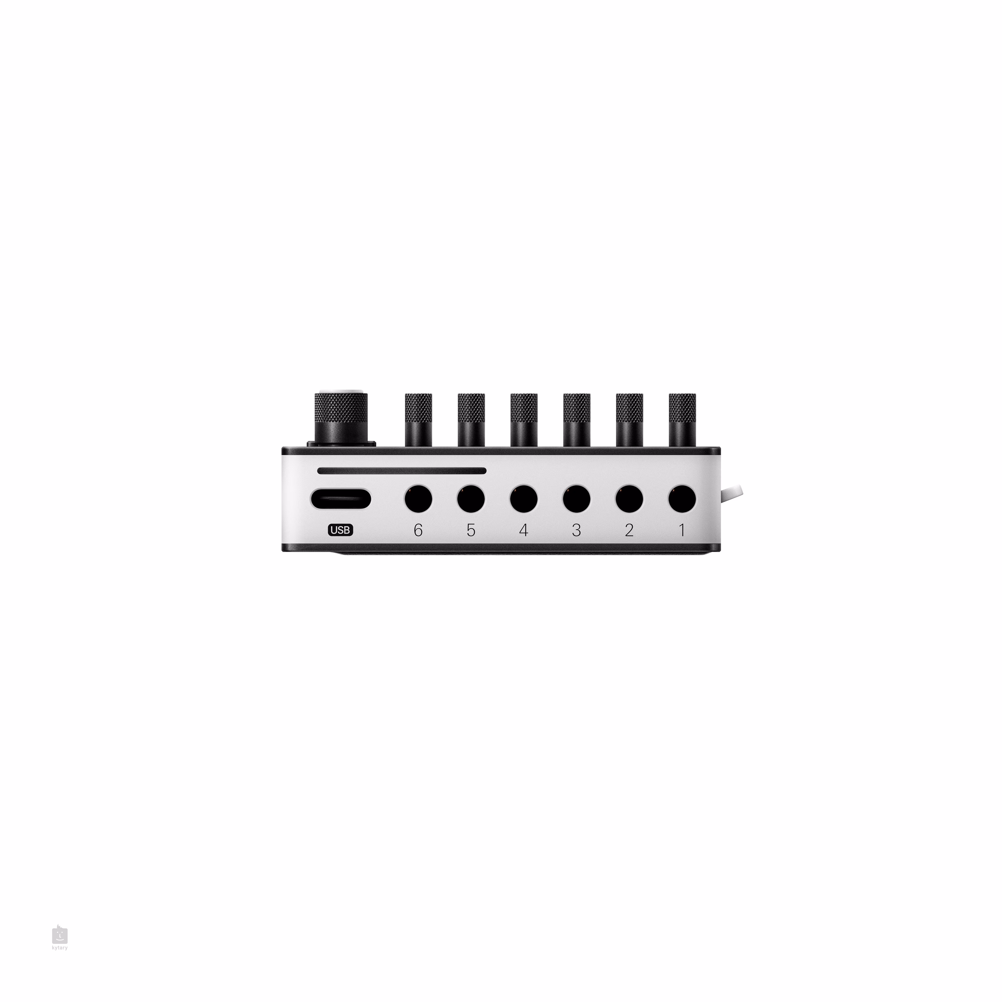Was die Anschlussmöglichkeiten angeht, so bietet er neben Stereo-Ein- und Ausgängen auch 3,5-mm- und 6,35-mm-Klinkenstecker, USB-C und die Möglichkeit, andere MIDI-Geräte anzuschließen. Dank der schlanken, maßgeschneiderten Kabel des TX-6 können Sie alle sechs Eingänge gleichzeitig nutzen, selbst in den engsten Arbeitsbereichen.