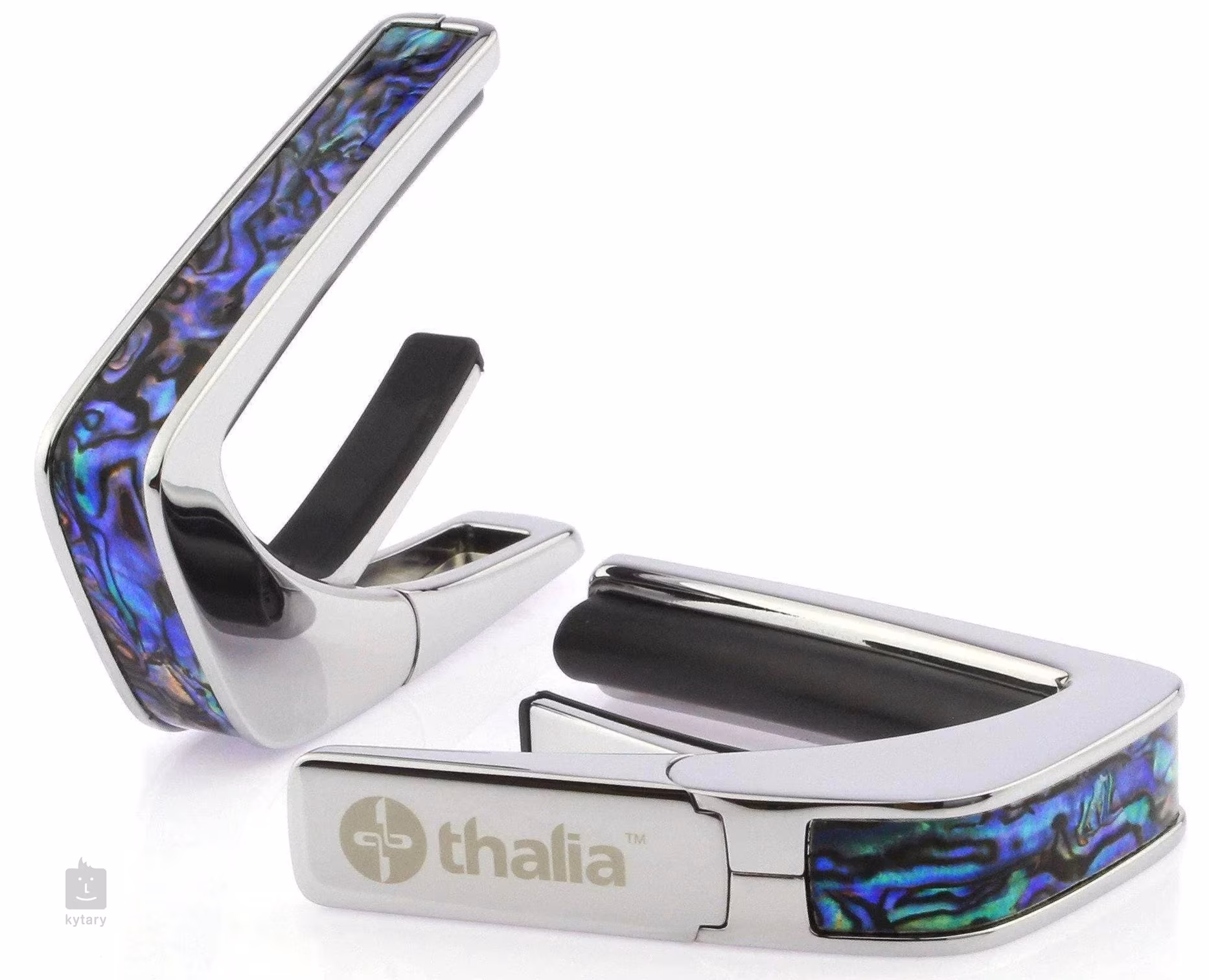 Dieses Modell stammt aus der Exotic Shell Series, bei der verschiedene Arten von exotischem Perlmutt verwendet werden, um ein einzigartiges Design zu erzielen. In diesem Fall ist der Metallkorpus des Kapodasters (in Schwarz, Chrom oder Gold) mit einem blauen Abalone-Ohrschmuck versehen, der in seinem Design einer gekräuselten Wasseroberfläche ähnelt. Ein absolut einzigartiger Kapodaster, der auf jeder Gitarre hervorsticht.