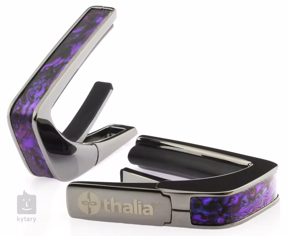 Dieses Modell stammt aus der Exotic Shell Series, bei der verschiedene Arten von exotischem Perlmutt verwendet werden, um ein einzigartiges Design zu erzielen. In diesem Fall ist der Metallkörper des Kapodasters (in Schwarz, Chrom oder Gold) mit einer eleganten violetten Perlmuttverzierung versehen. Ein absolut einzigartiger Kapodaster, der auf jeder Gitarre hervorsticht.