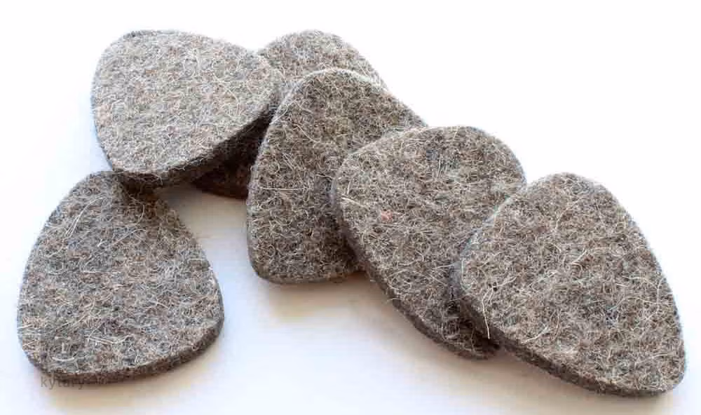 Ein Set von Wollfilz-Plektren, die sich ideal zum Spielen der Ukulele eignen. Naturwolle ist weich und biegsam, was sie sanft zu den Nylonsaiten macht und dem Klang einen runden und warmen Ton verleiht. In der Packung befinden sich vier Plektren aus grauer Naturwolle mit einer Dicke von 5 mm.