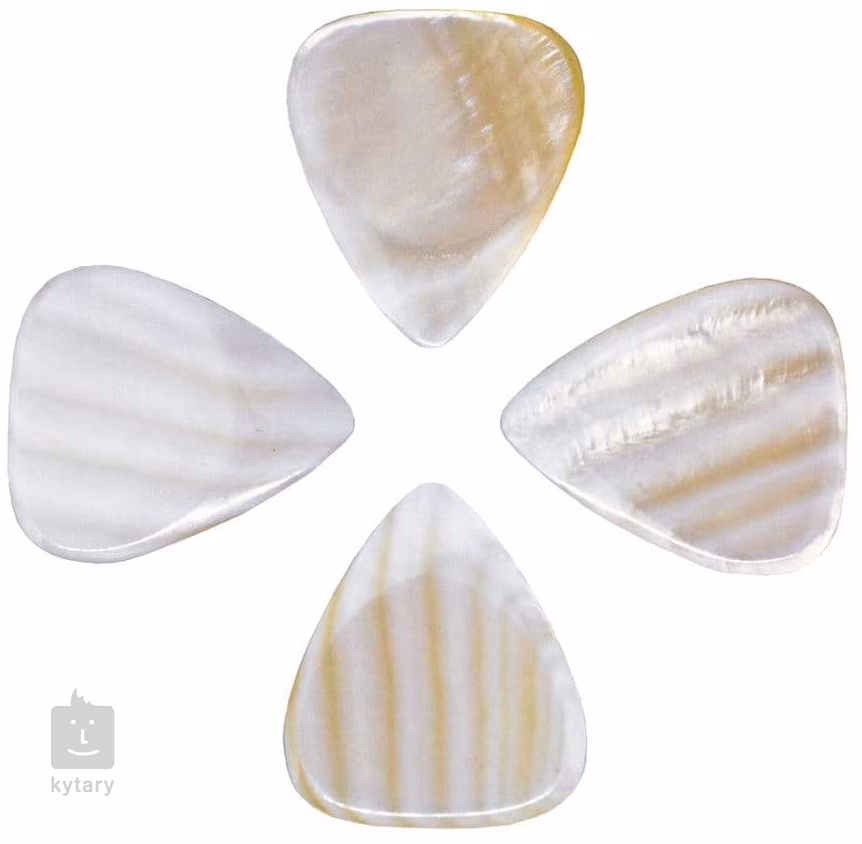 Die Plektren der Serie Shell Tones werden aus feinstem Perlmutt hergestellt, das aus den Schalen bestimmter Weichtiere gewonnen wird. Es zeichnet sich nicht nur durch sein schönes Muster aus, sondern auch durch seine außergewöhnliche Härte, die dem Klang der Gitarre einen durchdringenden und manchmal scharfen Ton verleiht. Das Griffbrett hat eine Standardform und eine Dicke von 2,5 mm, die sich zur Spitze hin auf 0,7 mm verjüngt. Es eignet sich perfekt als unvergessliches Geschenk für jeden Gitarristen.