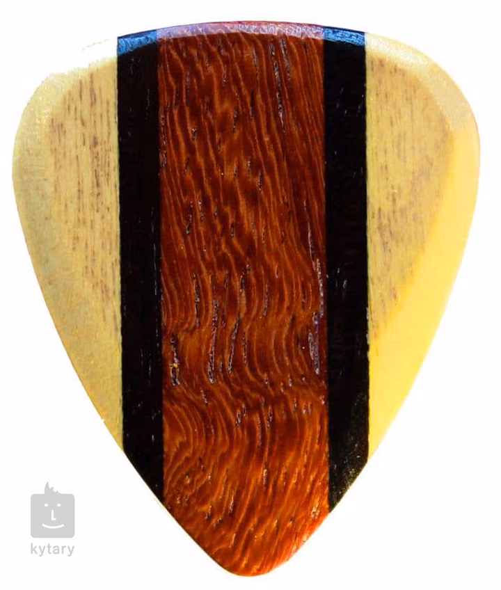 Ob Sie ein Geschenk für einen Musikliebhaber suchen oder einfach nur auf der Suche nach dem perfekten Sound sind und Plektren aus unkonventionellen Materialien ausprobieren möchten, bei Timber Tones werden Sie garantiert fündig. Die Timber Picks aus der Zone Tones Deluxe Serie werden aus drei verschiedenen exotischen Hölzern hergestellt, die ihnen ein außergewöhnliches Design verleihen. Das mittlere Holz, das bis zur Spitze des Plektrums reicht, bestimmt dabei den Ton. Jedes Stück ist handgeschnitten und lackiert. In der Mitte dieses Modells befindet sich das Hartholz Bloodwood, das die durchdringenden und klaren Höhen deiner Gitarre hervorhebt. An den Zargen finden Sie farblich kontrastierendes Ebenholz und Ahorn. Das Griffbrett ist 2,5 mm dick und verjüngt sich zur Decke hin auf 0,7 mm.