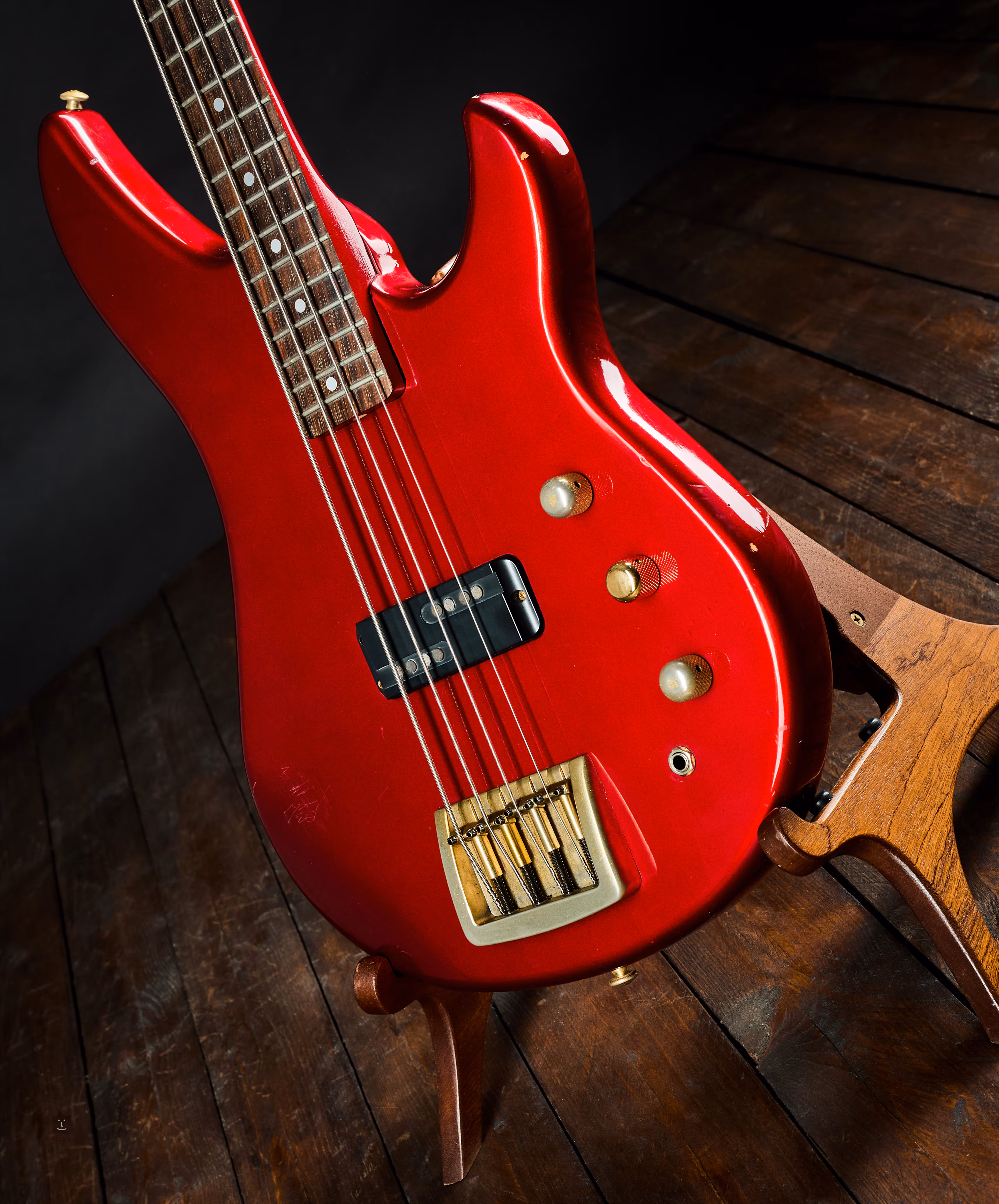 Das Instrument ist nicht nur wegen seiner mittleren Mensur (ca. 5 cm kürzer als bei einem normalen Long-Scale-Instrument) ungewöhnlich. Der klassisch gestaltete Split-Coil-Tonabnehmer im rechteckigen Gehäuse hat vertauschte Magnete auf der Bass- und Höhenseite und ist mit einer passiven Zweiband-Elektronik (Lautstärke – Bässe – Höhen) verbunden. Der originale massive Steg ist an der Rückseite des Korpus befestigt.