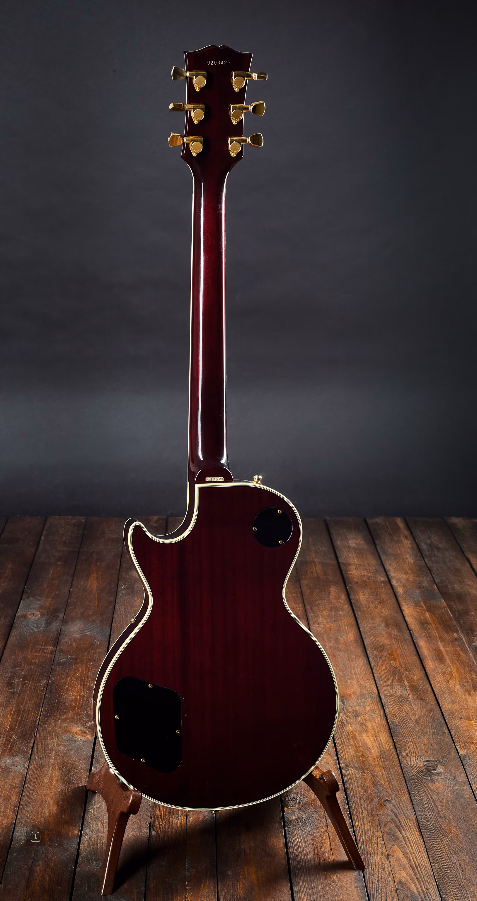 LC60 Modell mit voller Karosserie und LP Custom Look. Japanisches Instrument aus der ersten Hälfte der 90er Jahre. Konstruktion mit verleimtem Trans Tennon Joint.