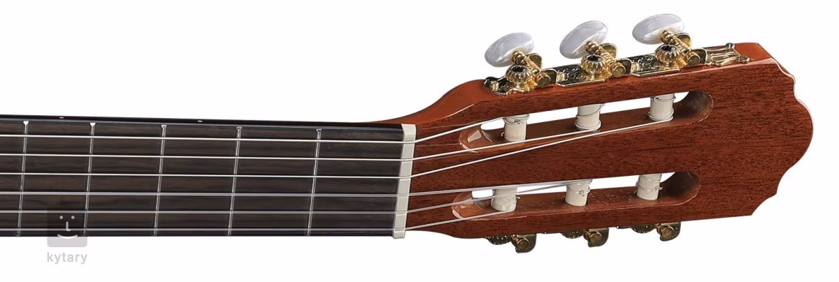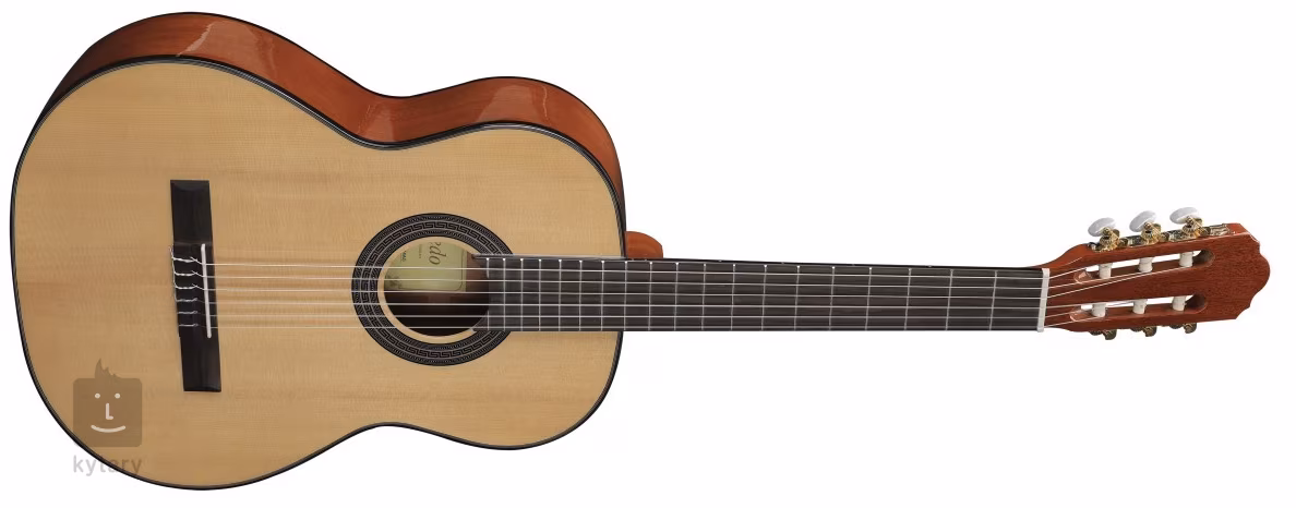 Die Toledo Estudio Solida 44AG Konzertgitarre ist ein erschwingliches Instrument mit halbmassiver Bauweise, das sich für Anfänger und erfahrenere Spieler eignet. Sie verfügt über eine Decke aus massiver Fichte, Boden und Zargen aus laminiertem Mahagoni, einen Okoumé-Hals und ein Griffbrett aus Palisander. Die Saiten sind in klassischen offenen Mechaniken mit Wirbeln aus Perlmuttimitat gelagert. Die stilvolle Verarbeitung wird durch die schwarze Randeinfassung mit schwarzen und weißen Linien, die dekorative Rosette und die glänzende Lackierung unterstrichen.