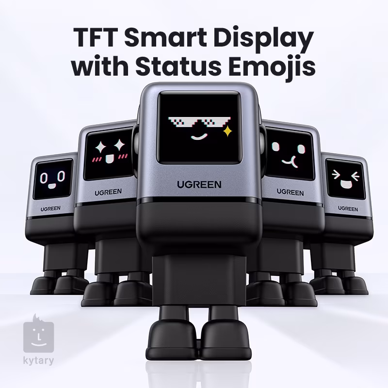 Das Design des Roboters ist nicht nur ästhetisch, sondern auch praktisch. Die kompakte Größe und die Magnetfüße machen es einfach, ihn auf jeder Oberfläche zu platzieren, während das TFT-Smart-Display mit Status-Emoji Ihnen sofortiges Feedback zum Ladestatus gibt.