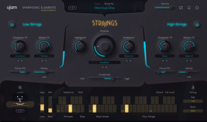 Für symphonische Arrangements gibt es Symphonic Elements STRIIIINGS mit Sounds aus der Library von Hans Zimmer, perfekt für Filmmusik und emotionale Stücke. Im Bereich Beats und Percussion finden Sie den Beatmaker COZY für einen Lo-Fi-Vibe, VOID und BERSERK für energiegeladene Beats sowie die Virtual Drummer DEEP und HOT für gefühlvolle Grooves und Hit-Beats.