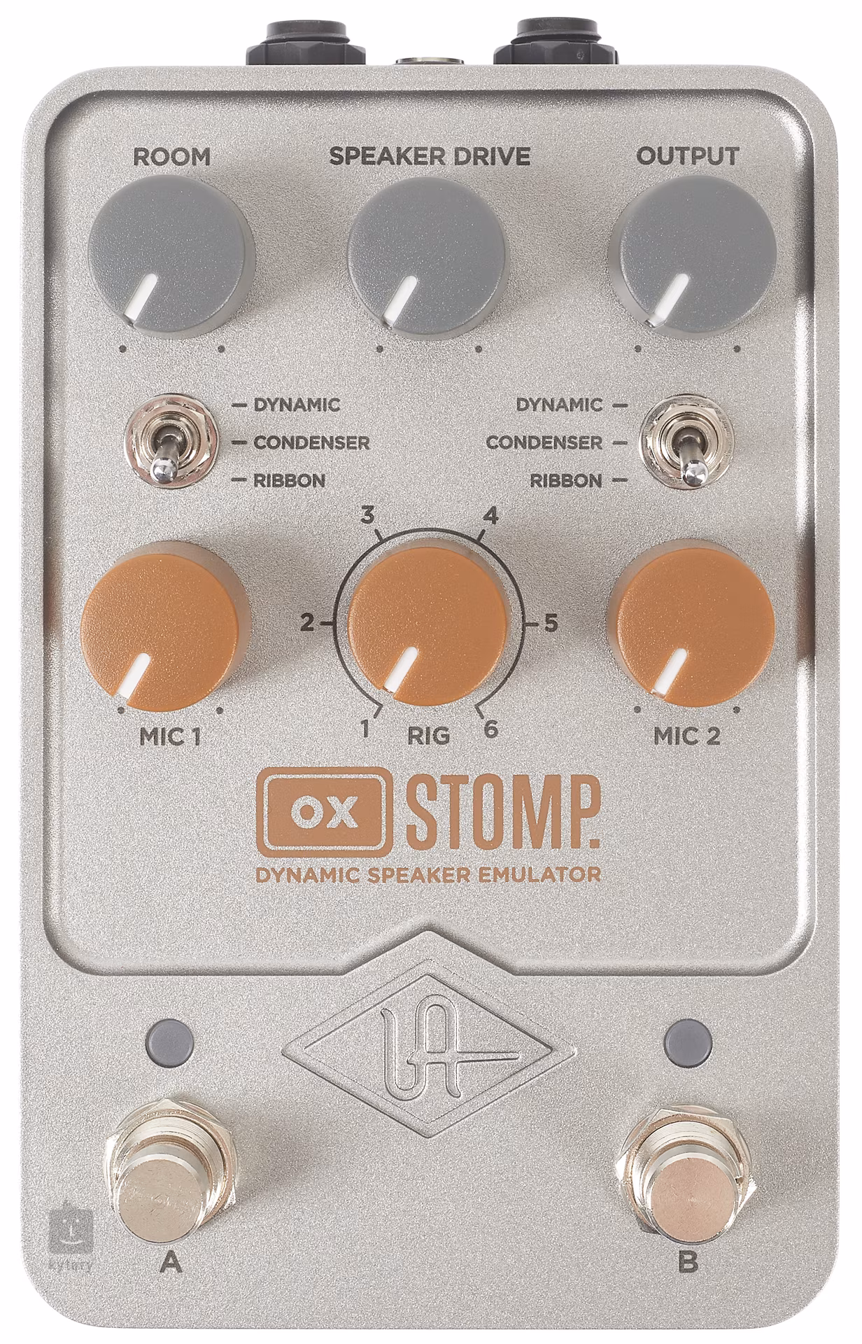 Universal Audio OX Stomp ist ein Stereo-Lautsprechersimulator im kompakten Pedalformat, der 22 legendäre Gitarrenboxen, 6 Arten von Vintage-Mikrofonen (Kondensator-, Dynamik- und Bändchenmikrofone) mit einstellbaren Grundparametern für die Aufnahme, Effekte in Studioqualität (1176-Kompressor, Plattenhall, Chorus, Flanger, drei Delay-Typen und 4-Band-EQ), die Funktion Dynamic Room Modeling für eine authentische Raumklangaufnahme, 6 Speicherplätze für Lieblings-Presets, dynamische Lautsprecheremulationen, Stereo-Ein- und Ausgang, Steuerung über die UAFX Control-App via Bluetooth und Updates über USB-C.