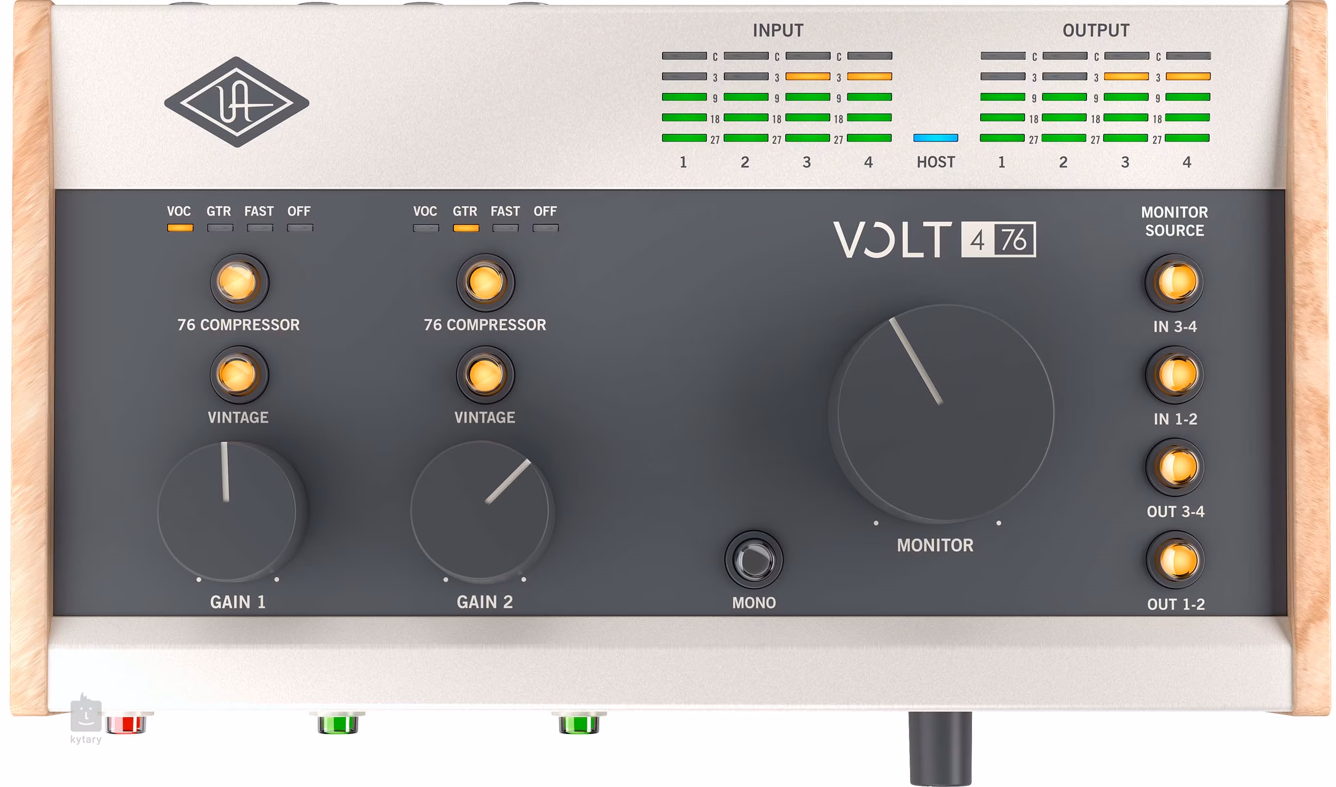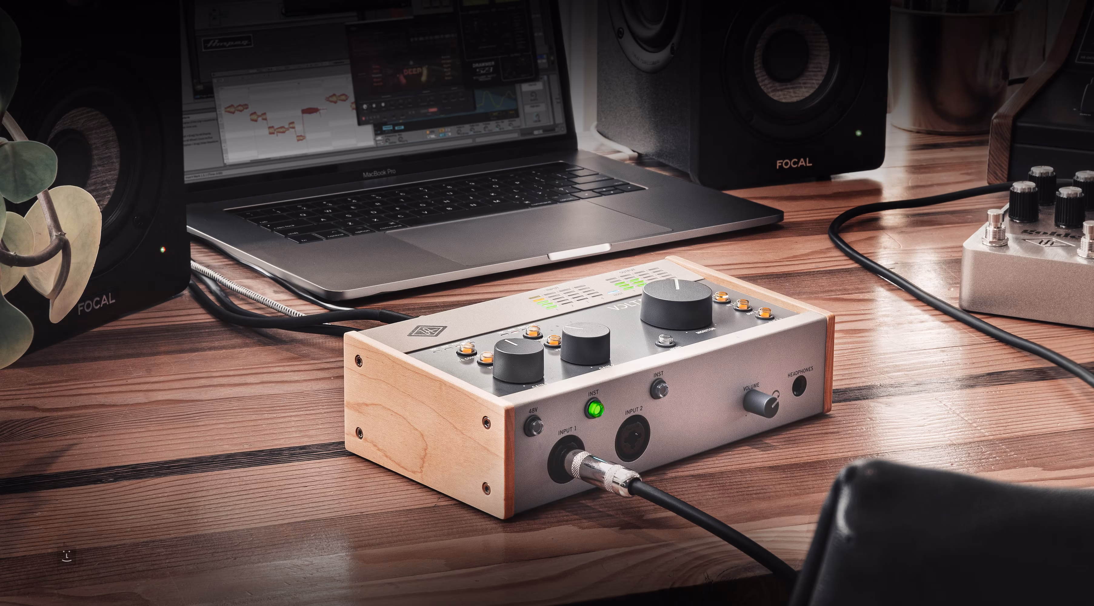 Das Volt 476 ist das kleinste Mitglied dieser neuen Familie von Audio-Interfaces. Er bietet Ihnen einen einzigartigen Kompressor in Studioqualität, der von der Hardware-Version des UA 1176 inspiriert wurde, zwei kombinierte Mikrofon- und Instrumenteneingänge, zwei Line-Eingänge, einen Kopfhörerausgang mit separatem Lautstärkeregler, Direct Out, vier Line-Ausgänge, einen Stereoausgang für Studiomonitore und MIDI In/Out-Anschlüsse für Controller und andere Treiber. Die Kommunikation mit einem PC, Laptop, iPad oder iPhone erfolgt dann über den USB-C-Anschluss.