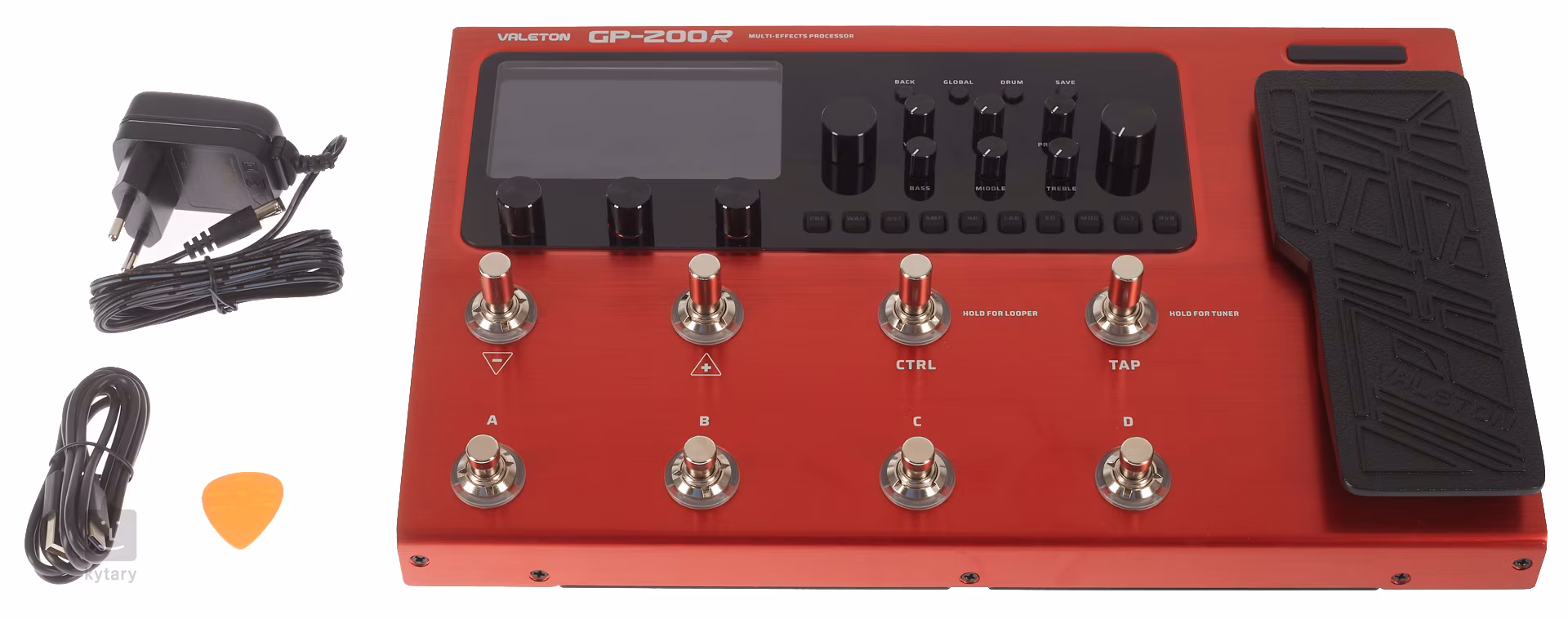 Der Multieffekt bietet über 240 Effekte, darunter über 70 Modeling-Simulationen bekannter Gitarren-/Bass-/Akustikinstrumente, 70 werksseitige Impulsantworten (IR), über 100 Dynamik-/Verzerrungs-/Frequenz-/Modulations-/Delay-/Reverb-Effekte und 256 Voreinstellungen (100 werksseitig, 156 benutzerdefiniert), 100 Auto-Drummer-Begleitpatterns, die Möglichkeit, bis zu 20 benutzerdefinierte IRs aufzunehmen, ein integrierter chromatischer Tuner und Looper mit 180 Sekunden Aufnahmezeit, eine editierbare Effektkette (11 Effekte können gleichzeitig verwendet werden), eine benutzerfreundliche Oberfläche und acht Fußtasten mit zuweisbaren Funktionen.