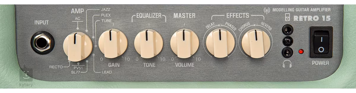 • Regler Amp Selector, Gain, Tone, Volume, Effects