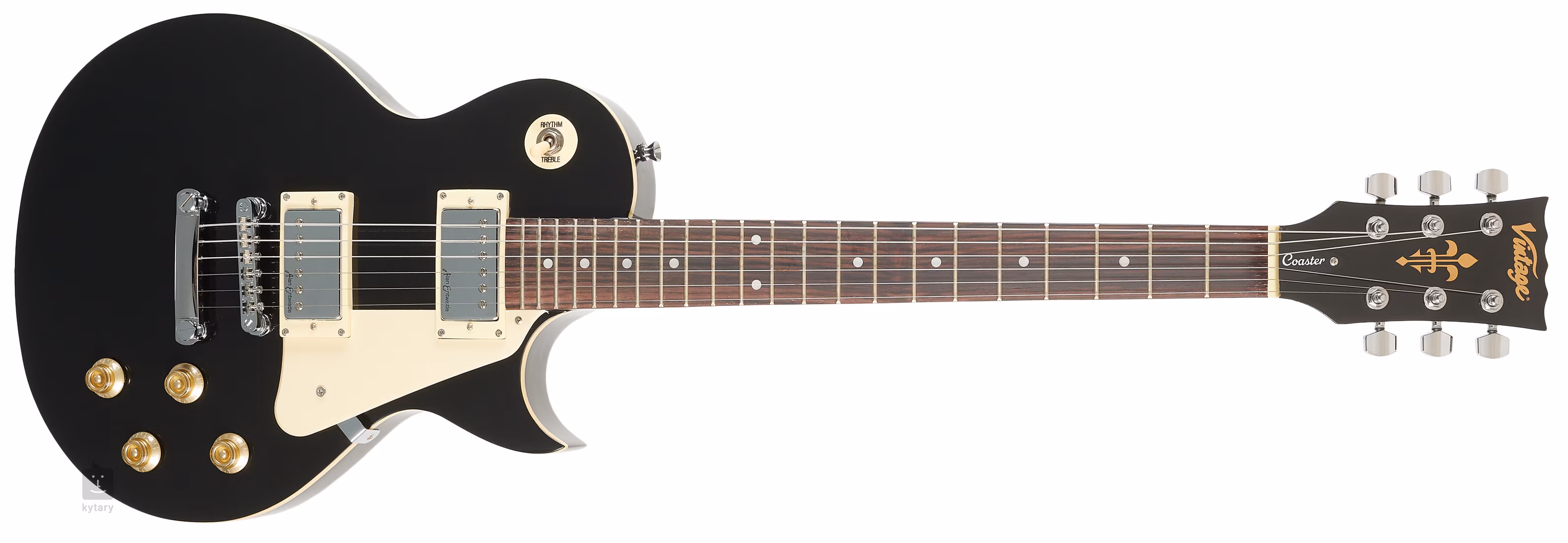 Die Vintage V10 Coaster Series Gloss Black ist eine Single-Cut-E-Gitarre in der beliebten "Elpe"-Form. Der Korpus des Instruments ist aus Linde gefertigt. Auf den Ahornhals ist ein Palisandergriffbrett mit zweiundzwanzig Bünden geleimt.