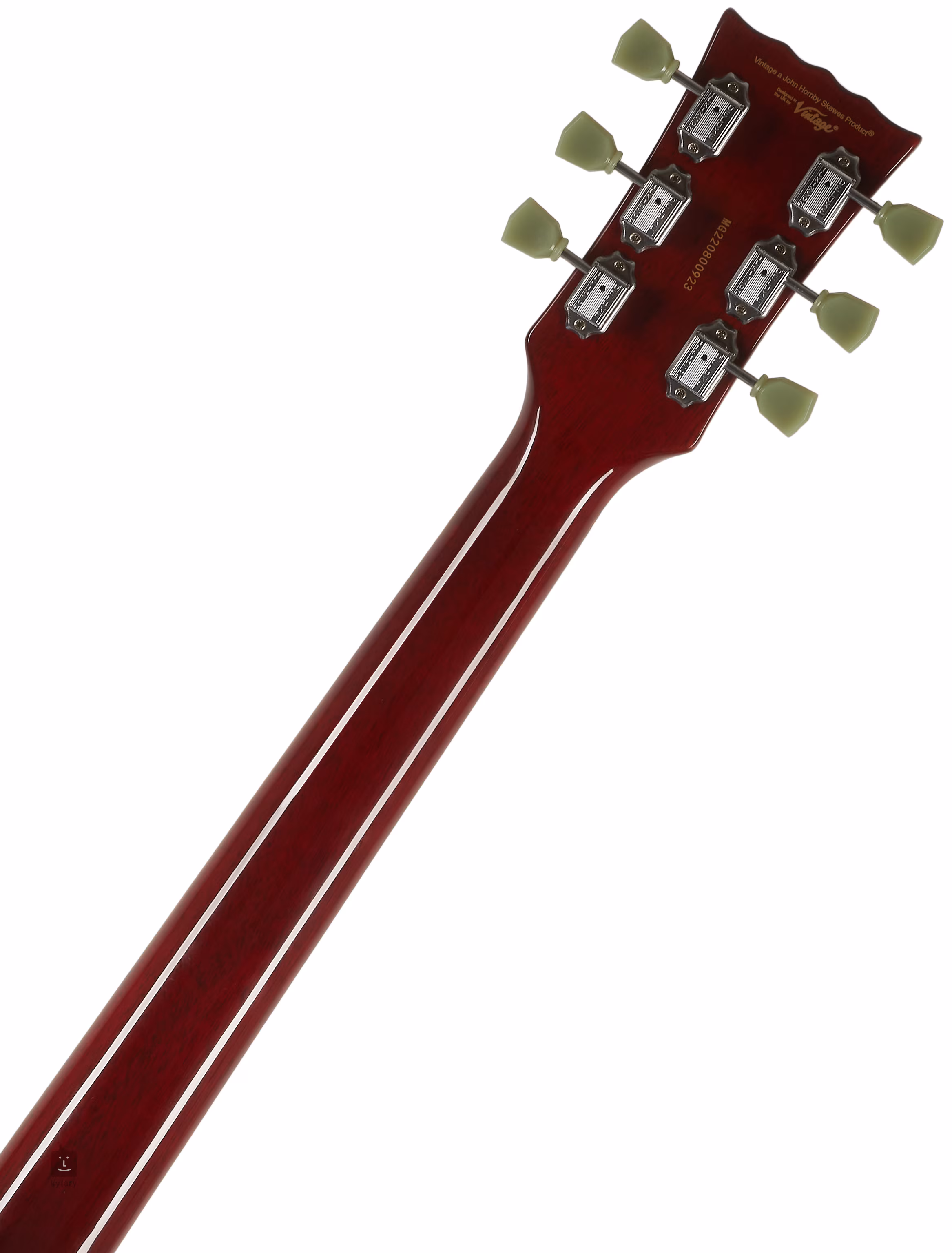 Die Vintage V100NBCSB ist eine E-Gitarre im schlichten LP-Single-Cut-Design aus der Vintage Reissued Series. Es handelt sich um ein Instrument ohne dekorative Elemente wie Zierleisten - dank dessen kann sie einen sehr guten Preis für den Kunden aufweisen.