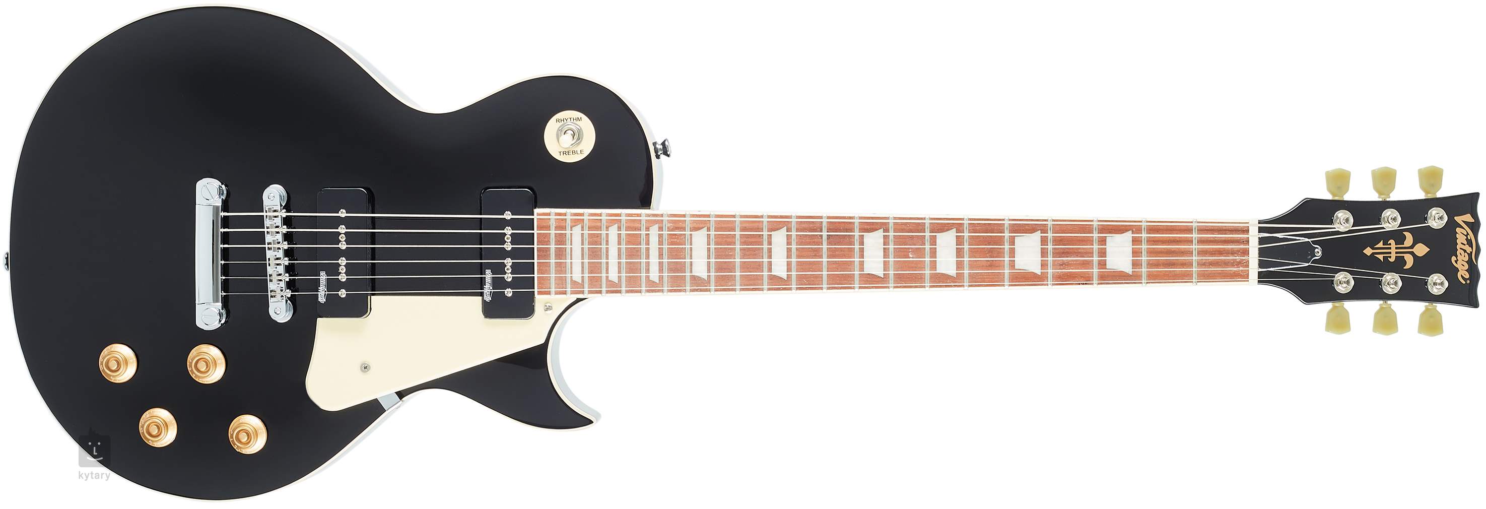Die VINTAGE V100PBK ist eine stilvolle E-Gitarre im LP-Single-Cut-Design mit Mahagonikorpus, geschnitzter Ahorndecke, Boulevard Black-Finish und stilvollem Binding. Zwei Wilkinson-Tonabnehmer im Soap-Bar-Design verleihen der Gitarre die definierten Bässe und druckvollen Mitten von Humbuckern sowie die transparenten Höhen klassischer Singlecoil-Tonabnehmer. Der Klangcharakter lässt sich mit zwei Lautstärkereglern, zwei Tonreglern und einem dreistufigen Pickup-Schalter formen. So können Sie die Einstellungen genau auf Ihre Bedürfnisse abstimmen - egal, ob Sie einen treibenden Rocksound oder einen warmen Bluessound bevorzugen. Die Saiten werden über einen GraphTech Nubone-Nullbund in zuverlässige Grover-Mechaniken und einen Wilkinson TOM-Saitenhalter im Stringer montiert.