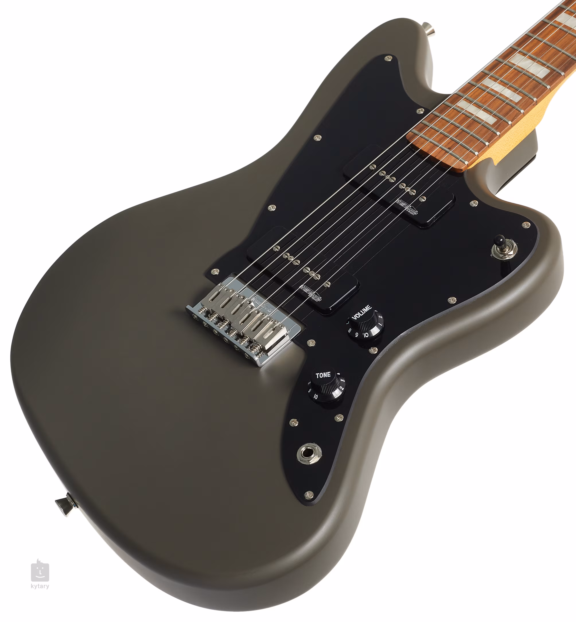 Zwei Wilkinson-Tonabnehmer im Soap-Bar-Design versorgen die Gitarre mit den definierten Bässen und durchdringenden Mitten von Humbuckern sowie den transparenten Höhen von Single-Coil-Pickups. Der Klangcharakter lässt sich mit dem Volume- und Tone-Regler sowie dem dreistufigen Toggle-Switch formen. Die Saiten sind in Wilkinson-Stimmmechaniken verankert und durch einen massiven Steg mit sechs Sätteln im Korpus geführt. Das stilvolle Design wird durch ein schwarzes Schlagbrett und verchromte Hardware akzentuiert.