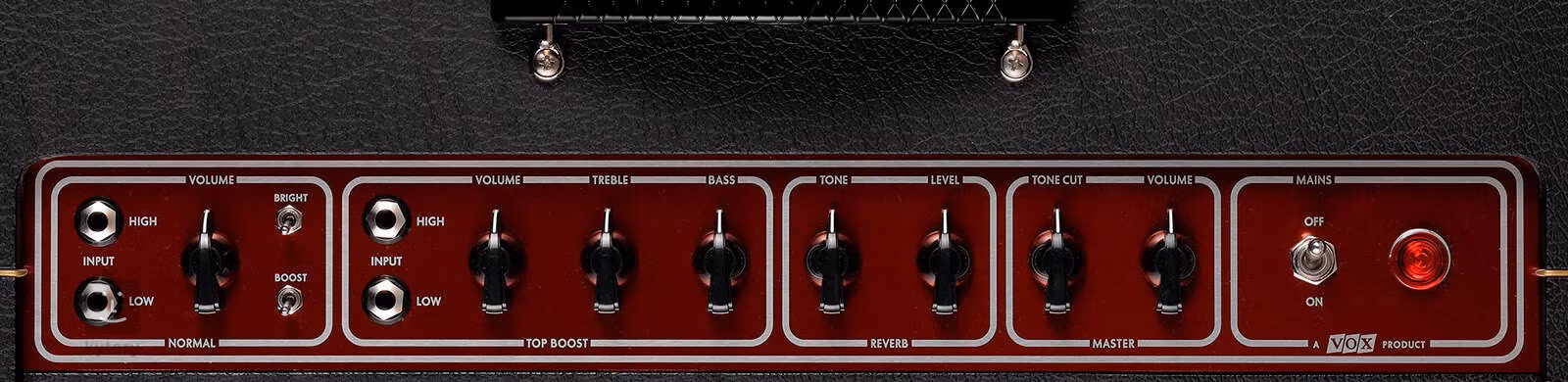 Normal: Volume, Bright Switch, Boost Switch; Top Boost: Volume, Treble, Bass; Reverb: Tone, Level; Master: Tone Cut, Volume