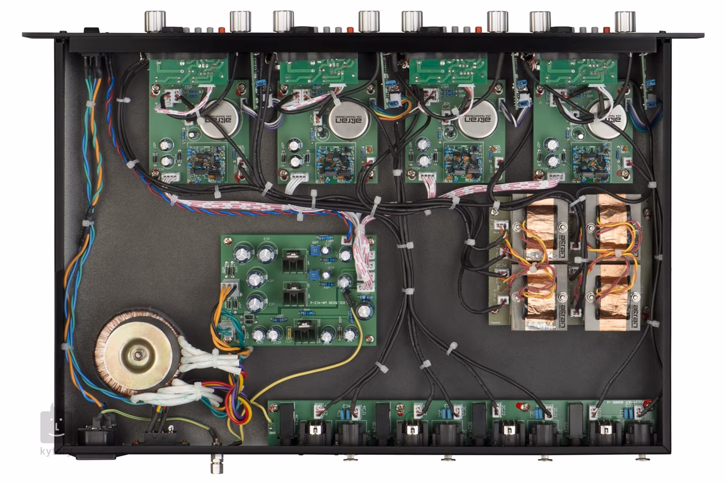 Eine interne Schaltung mit diskreten Operationsverstärkern und amerikanischen Altran-Transformatoren bietet dann viel Headroom und minimale Verzerrung. Dadurch ist der WA-412 sehr vielseitig und eignet sich für Instrumenten-, Gesangs- und Percussion-Tonabnehmer.