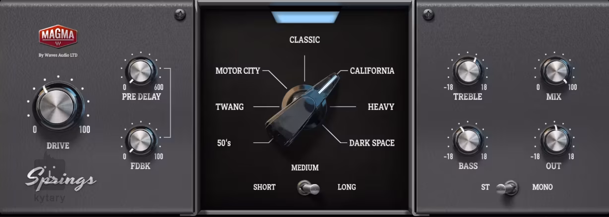 Das Magma Springs Plugin von Waves ist eine Sammlung von sieben Arten von Federhall, die jeweils einen einzigartigen Stil und Sound bieten. Dieses Plugin bietet analog abgestimmte Kontrolle für eine Vielzahl von Sounds, von klassischem Indie über Motown und Dub bis hin zu Rock & Roll und Country. Magma Springs ist ideal für die Erzeugung von Vintage- und modernen Klangtexturen und damit ein vielseitiges Werkzeug für eine Vielzahl von Musikgenres.