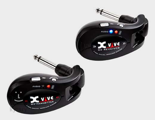 DasXVive U2 ist ein kompaktes, kabelloses Plug-and-Play-Gitarren-/Bass-Set mit 24 Bit/48 kHz digitaler Übertragungsqualität, 5 ms Latenzzeit, 2,4-GHz-System mit einer Reichweite von über 20 Metern und einem eingebauten Li-Ionen-Akku mit bis zu fünf Stunden Laufzeit pro Ladung (Aufladen über USB). Das Set besteht aus einem Sender, den Sie über eine 6,3-mm-Klinkenbuchse an eine Quelle (E-Gitarre, Bass) anschließen, und einem Empfänger, den Sie an einen Verstärker, eine DI-Box oder ein Audio-Interface anschließen.