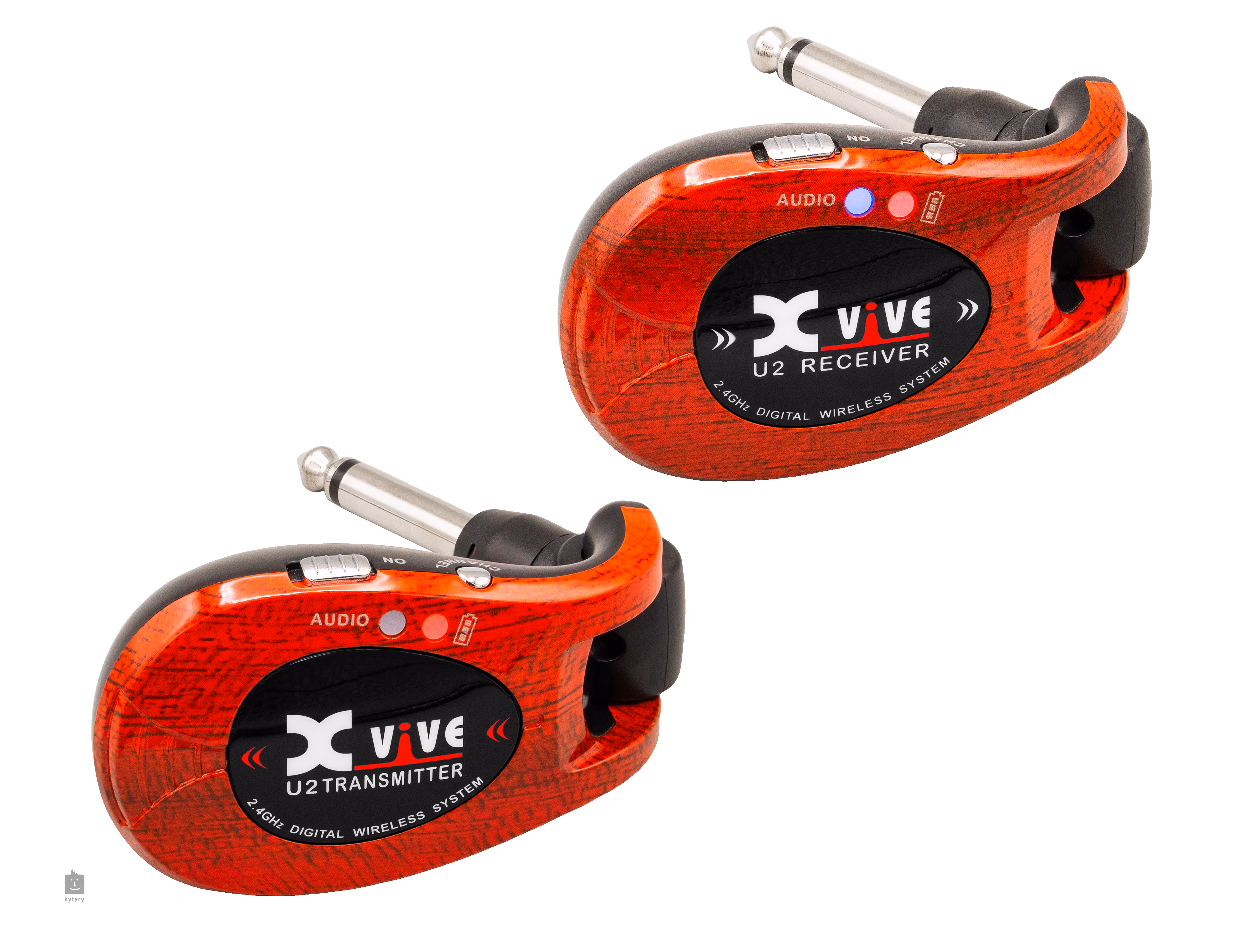 DasXVive U2 ist ein kompaktes, kabelloses Plug-and-Play-Gitarren-/Bass-Set mit 24 Bit/48 kHz digitaler Übertragungsqualität, 5 ms Latenzzeit, 2,4-GHz-System mit einer Reichweite von über 20 Metern und einem eingebauten Li-Ionen-Akku mit bis zu fünf Stunden Laufzeit pro Ladung (Aufladen über USB). Das Set besteht aus einem Sender, den Sie über eine 6,3-mm-Klinkenbuchse an eine Quelle (E-Gitarre, Bass) anschließen, und einem Empfänger, den Sie an einen Verstärker, eine DI-Box oder ein Audio-Interface anschließen.