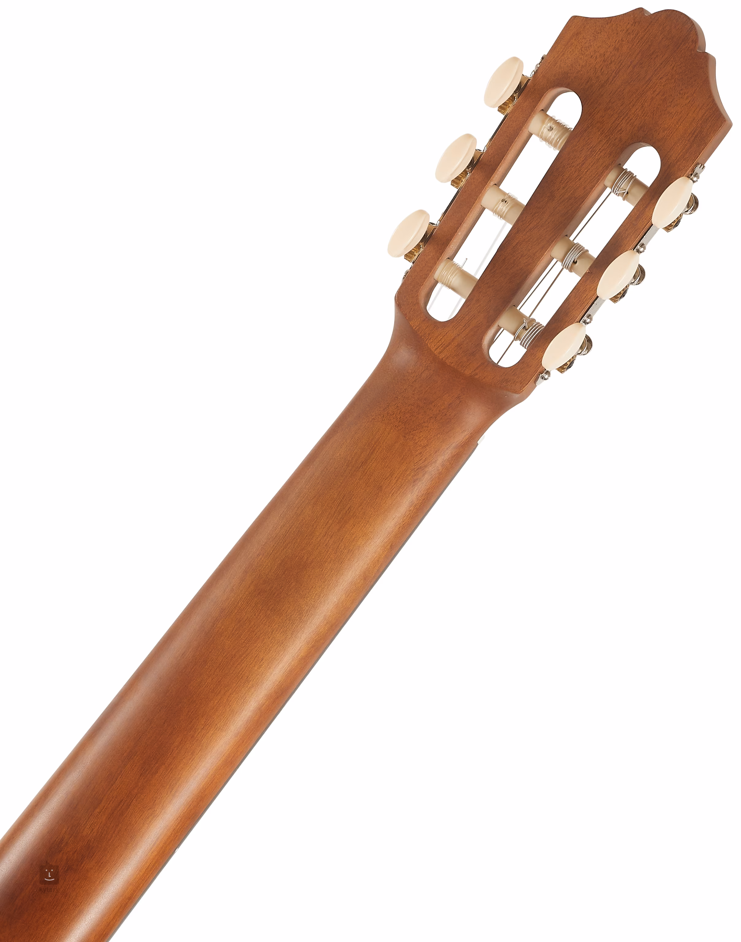 Das Modell C40III verfügt über einen mehrschichtigen Korpus aus Fichten-Sperrholz vorne und Meranti-Sperrholz Boden und Zargen, Palisander-Griffbrett und -Schuster, klassische offene verchromte Mechaniken und traditionelle Zierleisten und Rosetten.