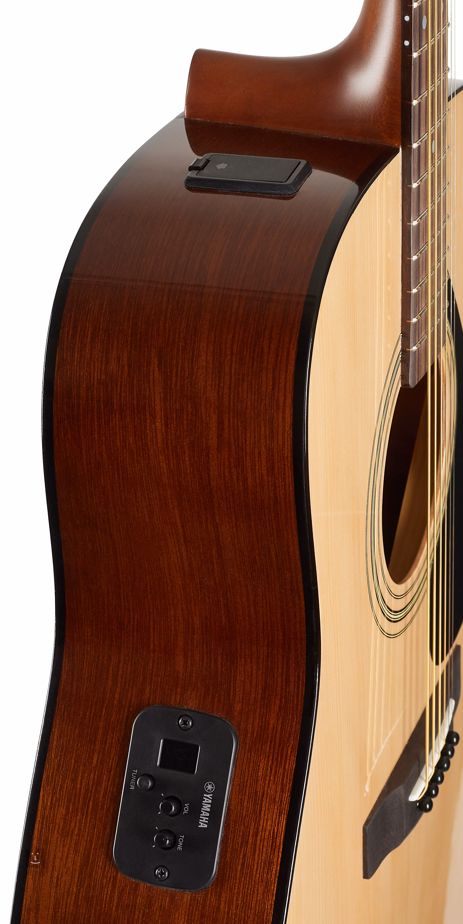 Die FX310AII NT ist eine elektroakustische Gitarre mit der beliebten "Western"-Dreadnought-Korpusform. Sie verfügt über einen mehrschichtigen Korpus aus Fichtenholz (Vorder- und Rückseite) und Zargen aus aktuell verfügbarem Material (Locally Sourced Tonewood), Palisandergriffbrett und -steg, die verchromten Die-Cast-Stimmmechaniken des Unternehmens und traditionelle Akzente in Form von schwarzem Binding und Schlagbrett.