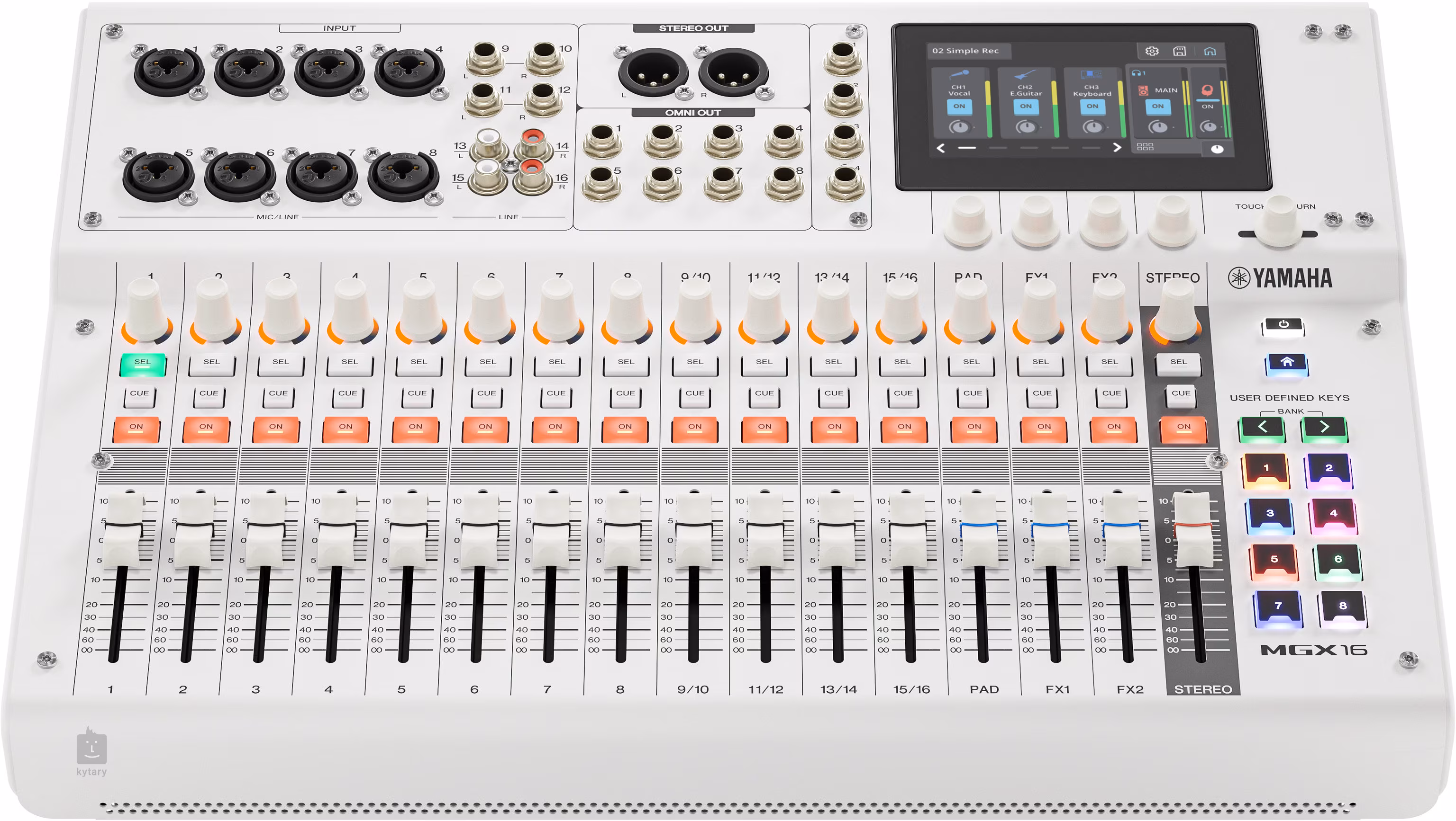 Acht anpassbare Pads und vier Benutzerregler können in vier Bänken konfiguriert werden – zum Auslösen von Sounds, Szenen oder Testtönen. So fungiert das MGX16 nicht nur als digitaler Mixer, sondern auch als kreatives Zentrum für moderne Produktionen. Dennoch wiegt es nur 4,7 kg und ist damit eine ideale tragbare Lösung ohne Kompromisse bei der Robustheit.