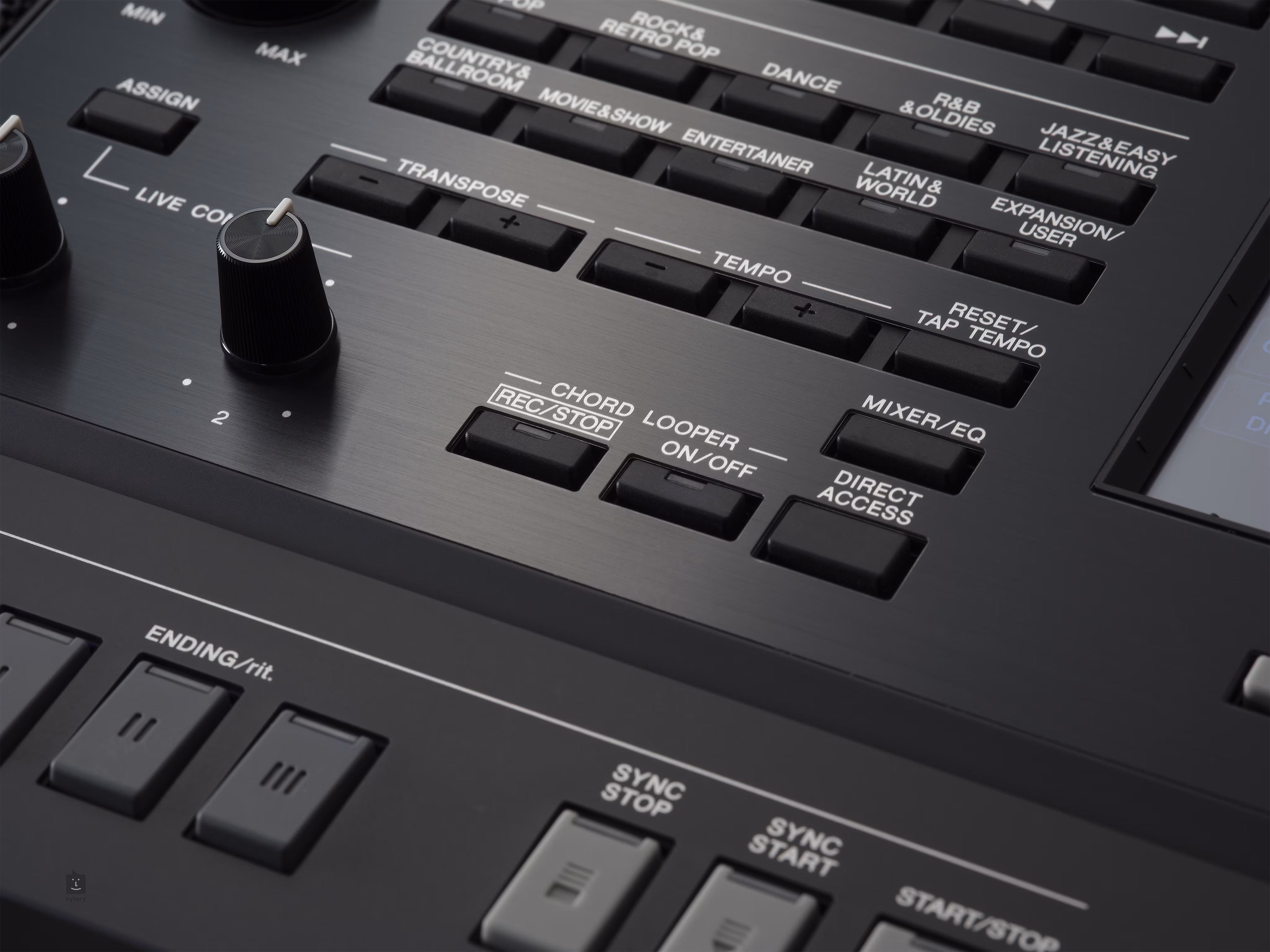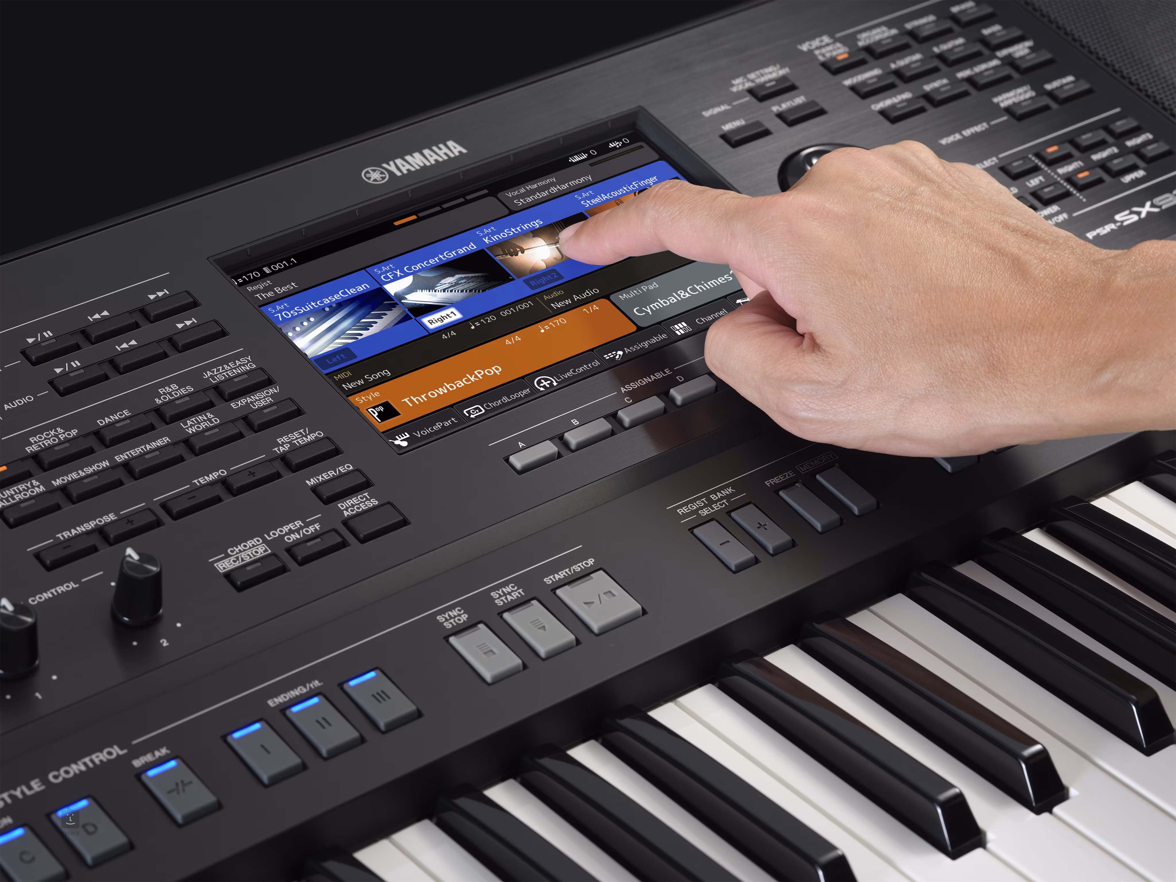 Für diejenigen, die nicht mit Akkorden umgehen können, gibt es Begleitstile, die eine professionelle Band ersetzen, Ihnen aber die volle Kontrolle über die Arrangements und Harmonien lassen. Außerdem steht Ihnen ein virtueller Schlagzeuger zur Seite, der bei unerwarteten Rhythmuswechseln den Takt hält. Mit Workstation können Sie auch Ihre eigenen Spuren aufnehmen und in Studioqualität wiedergeben. Ein 7-Zoll-Touchscreen-Display und ein übersichtliches Bedienfeld machen die Navigation durch die Tracks und Funktionen so einfach wie möglich. Acht anpassbare Tasten ermöglichen den schnellen Zugriff auf Ihre Lieblingsfunktionen, und mit zwei Live Control-Potentiometern können Sie den Sound direkt beim Spielen einstellen. Damit sind die Bedienelemente des PSR-SX920 so intuitiv wie möglich, so dass Sie keine Zeit mit Suchen verschwenden und sich voll und ganz auf das Musizieren konzentrieren können.