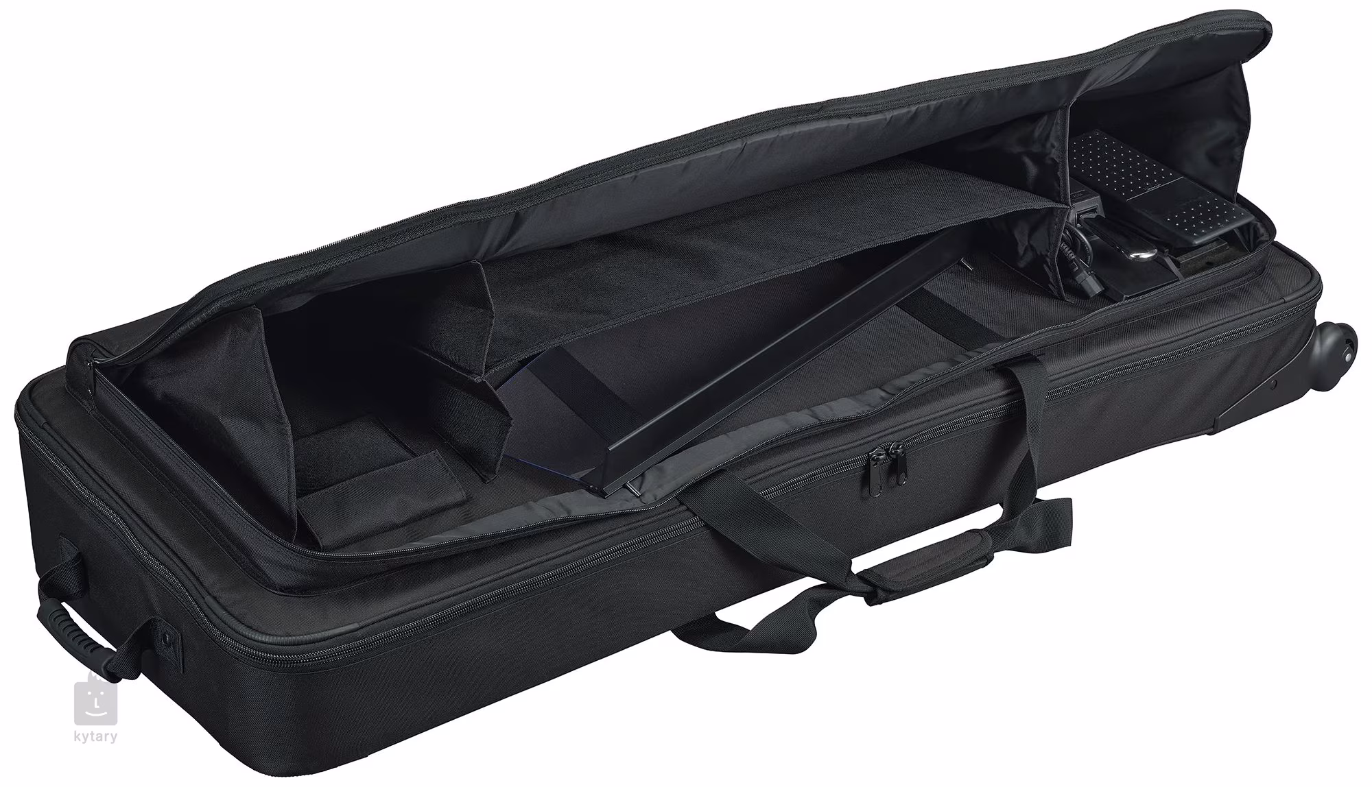 Für eine bequeme Handhabung ist der Koffer mit Griffen und praktischen Rollen ausgestattet, die das Tragen eines schweren Instruments zu einem Kinderspiel machen. Außerdem gibt es eine geräumige Außentasche zur Aufbewahrung von Netzadaptern, Kabeln, Noten oder anderem Zubehör. Mit Außenmaßen von 1350 × 240 × 490 mm und einem Gewicht von nur 5,1 kg bietet er die ideale Kombination aus Schutz, Mobilität und geringem Gewicht.