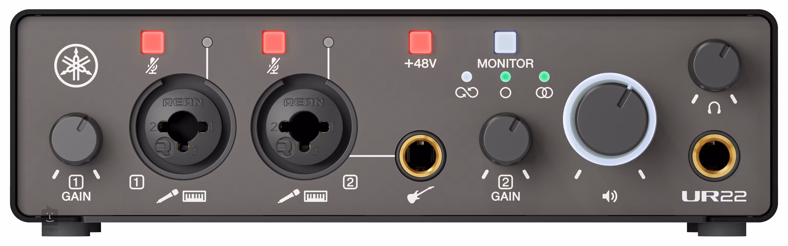 Das Interface ist mit zwei hochwertigen Yamaha UR-Mikrofonvorverstärkern mit +48-V-Phantomspeisung ausgestattet, die eine hervorragende Dynamik und Klarheit der Aufnahme gewährleisten. Zwei kombinierte Mikrofon-/Line-Eingänge mit Mute-Taste ermöglichen den flexiblen Anschluss von Mikrofonen, Instrumenten oder externen Geräten, während der Hi-Z-Eingang für den direkten Anschluss einer E-Gitarre oder E-Bass ohne DI-Box vorgesehen ist.