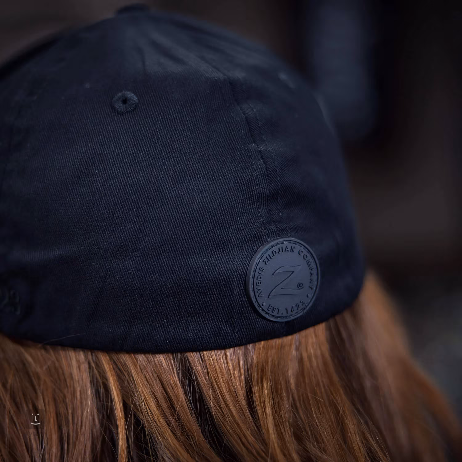 Stylische schwarze Kappe von Zildjian, die die Wiederbelebung der legendären Z Custom Linie von Metallbecken feiert. Sie ist mit dem schwarzen Firmennamen und einem Z-Gummiabzeichen bestickt.