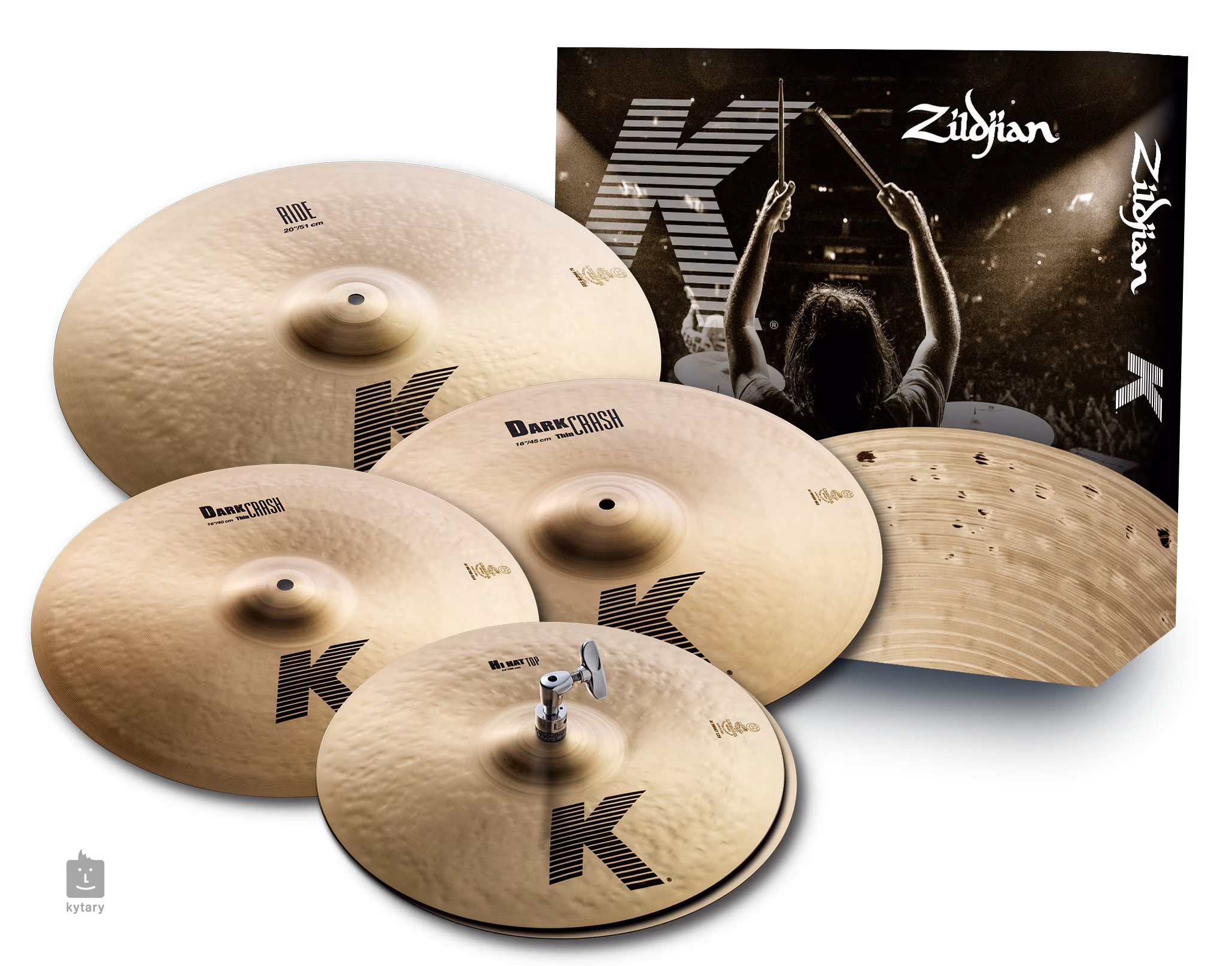 Dieses Paket enthält einen Satz Becken aus der K-Serie: 20" K Ride, 14" K HiHat, 16" K Dark Thin Crash und 18" K Dark Crash Thin.