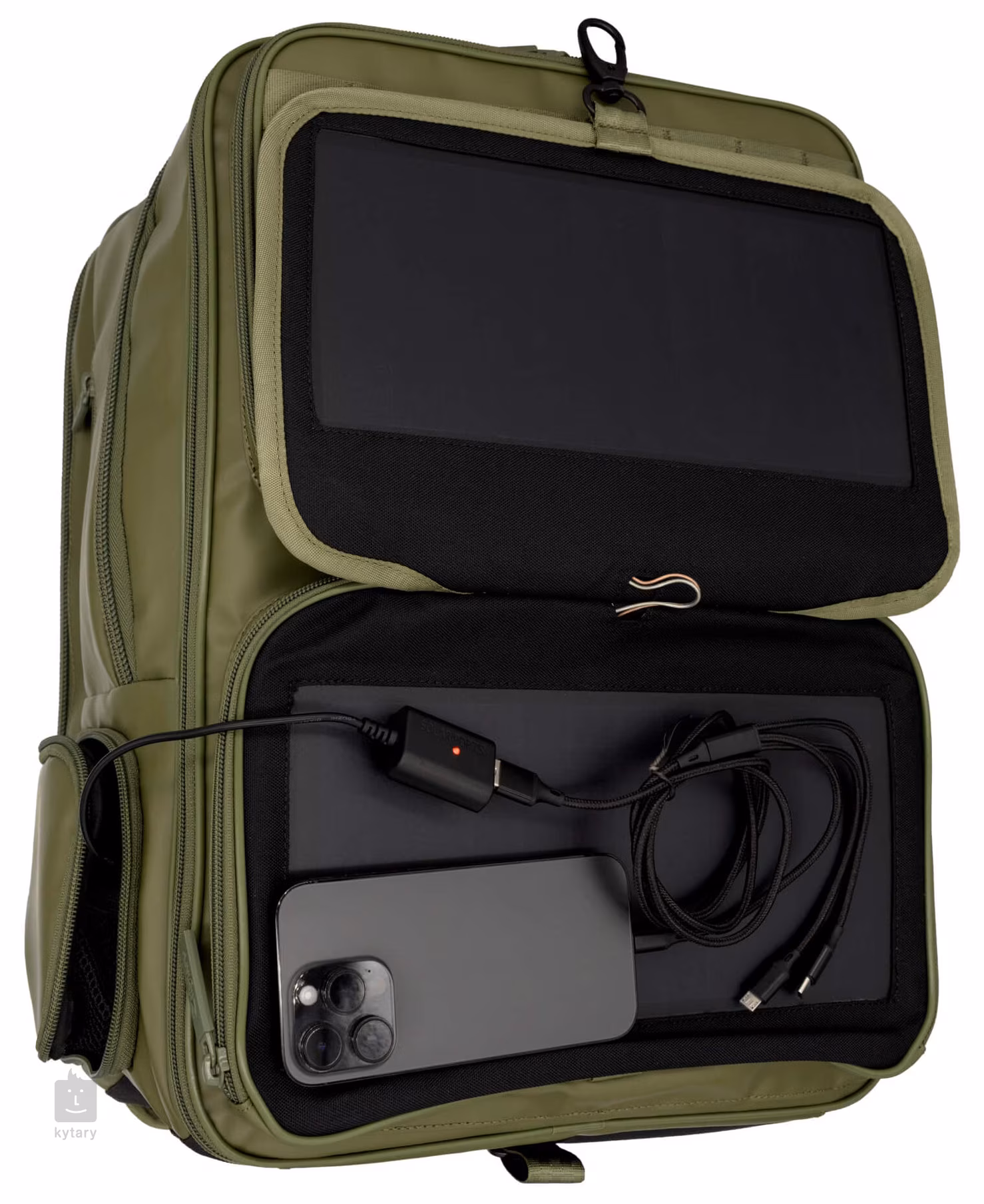 Der Touring Backpack verfügt über clevere und praktische Funktionen, die jeder Musiker, der unterwegs ist, schätzen wird. Dazu gehören große Flaschentaschen, integrierte Solarpanele zum Aufladen im Freien, RFID-Taschen zum Schutz persönlicher Daten und erweiterbare Reißverschlüsse zur Vergrößerung des Stauraums. Gepolsterte Gurte und Gurte zur Befestigung am Gepäck sorgen für maximalen Tragekomfort.